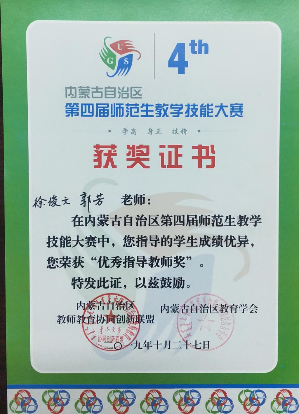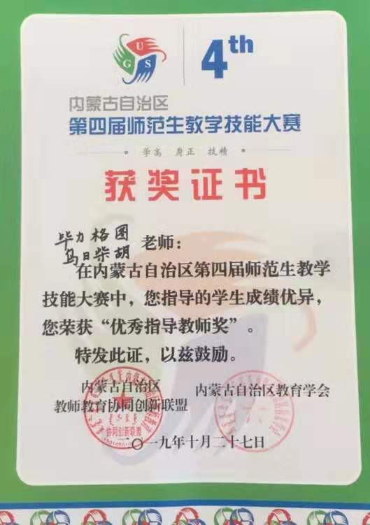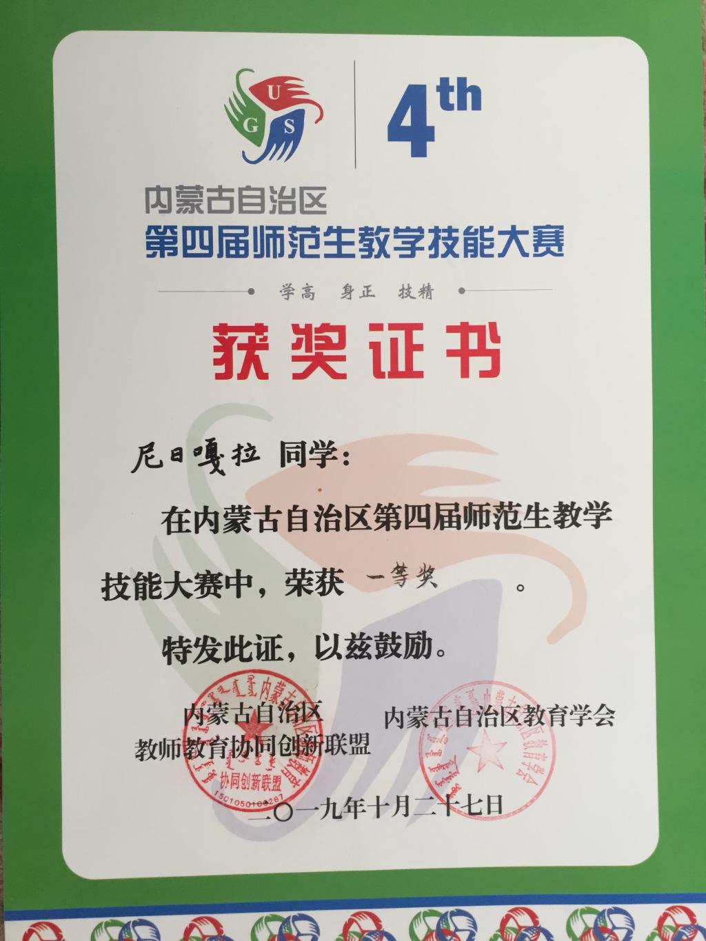 经过几个环节的激烈比拼,我院取得优异的成绩,荣获内蒙古师范大学优秀指导教师的有毕力格图老师、乌日柴胡老师、徐俊文老师、郭芳老师;尼日嘎拉同学获得数学与应用数学(蒙古语)组一等奖,哈布日同学获得数学与应用数学(蒙古语)组二等奖,孟昆令同学获得数学与应用数学(汉语)组二等奖,王亚菲同学获得数学与应用数学(汉语)组优秀奖。