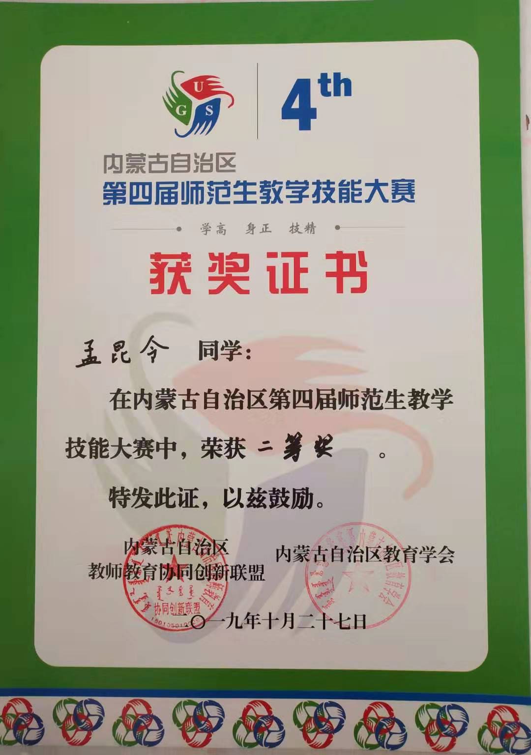 2019年10月25日至28日,内蒙古自治区第四届师范生教学技能大赛在内蒙古民族大学举办。此次比赛由内蒙古自治区教师教育协同创新联盟、内蒙古自治区教育学会主办,内蒙古民族大学承办。大赛旨在“以赛促训、以赛促学、以赛促教、赛教结合、提高能力”,培养具有师德高尚、理念先进、能力扎实的优秀教师后备力量。内蒙古自治区第四届师范生教学技能大赛共有来自内蒙古师范大学、包头师范学院、集宁师范学院、呼伦贝尔学院、赤峰学院、呼和浩特民族学院、河套学院和内蒙古民族大学八所院校的160名选手参赛。比赛内容包括笔试和面试两个部分。笔试部分依据中小学教师资格证考试笔试大纲制定,面试部分由教学设计、课件制作、即兴演讲、模拟授课及回答问题等五部分构成。本次比赛进行了现场直播,直播点击量超过41万次。