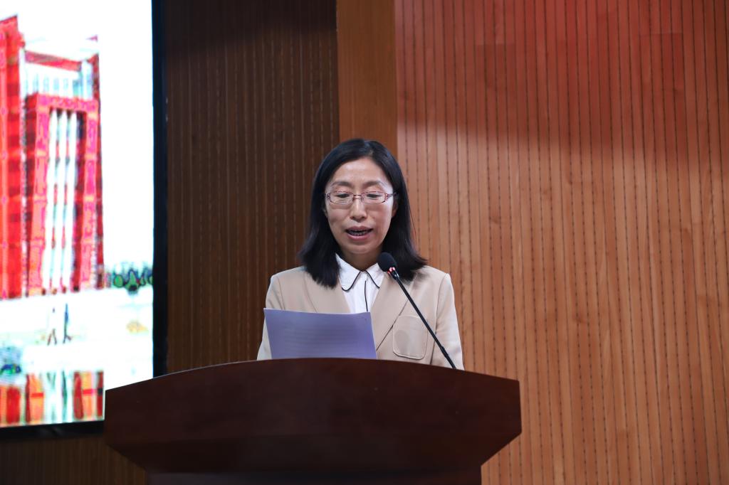 包霞老师首先代表数学科学学院欢迎各位老师的到来,庆祝2018级数学与应用数学专业和统计学专业的同学们完成实践。接下来包老师主要向同学们讲述了三点。一是教育实践的基本情况,二是向各基地单位领导和老师等表示感谢,三是回顾教育实践过程后的收获与反思。