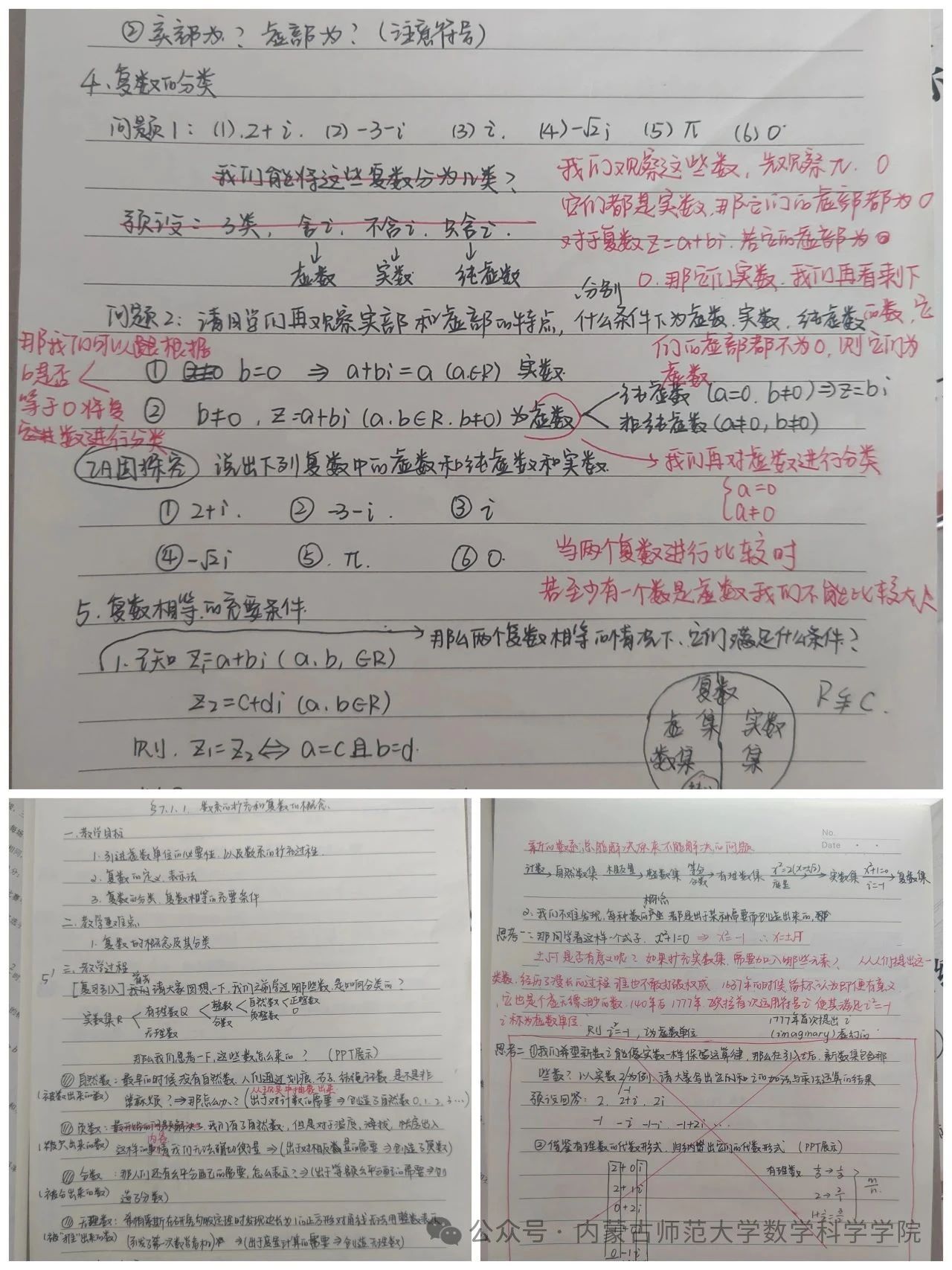 独立讲授《数系的扩充与复数的概念》,知识看起来简单,我却压力山大!如何让抽象的“虚数单位 i”被理解?备课成了“攻坚战”:查资料、磨教案、和我一起实习的同学做我的学生,在空教室反复演练,给我鼓励与适当的建议,最后终于找到清晰的讲课思路与衔接方式。站上讲台,心跳加速。引导着大家从熟悉的实数,走进“数不够用”的困境,进而引出一节课的重点内容……这次讲课对我来说是心态上的突破,我不再站上讲台就瑟瑟发抖,而是积极学习其他老师讲课时的优点,弥补自己的不足,在讲台上逐渐自信。