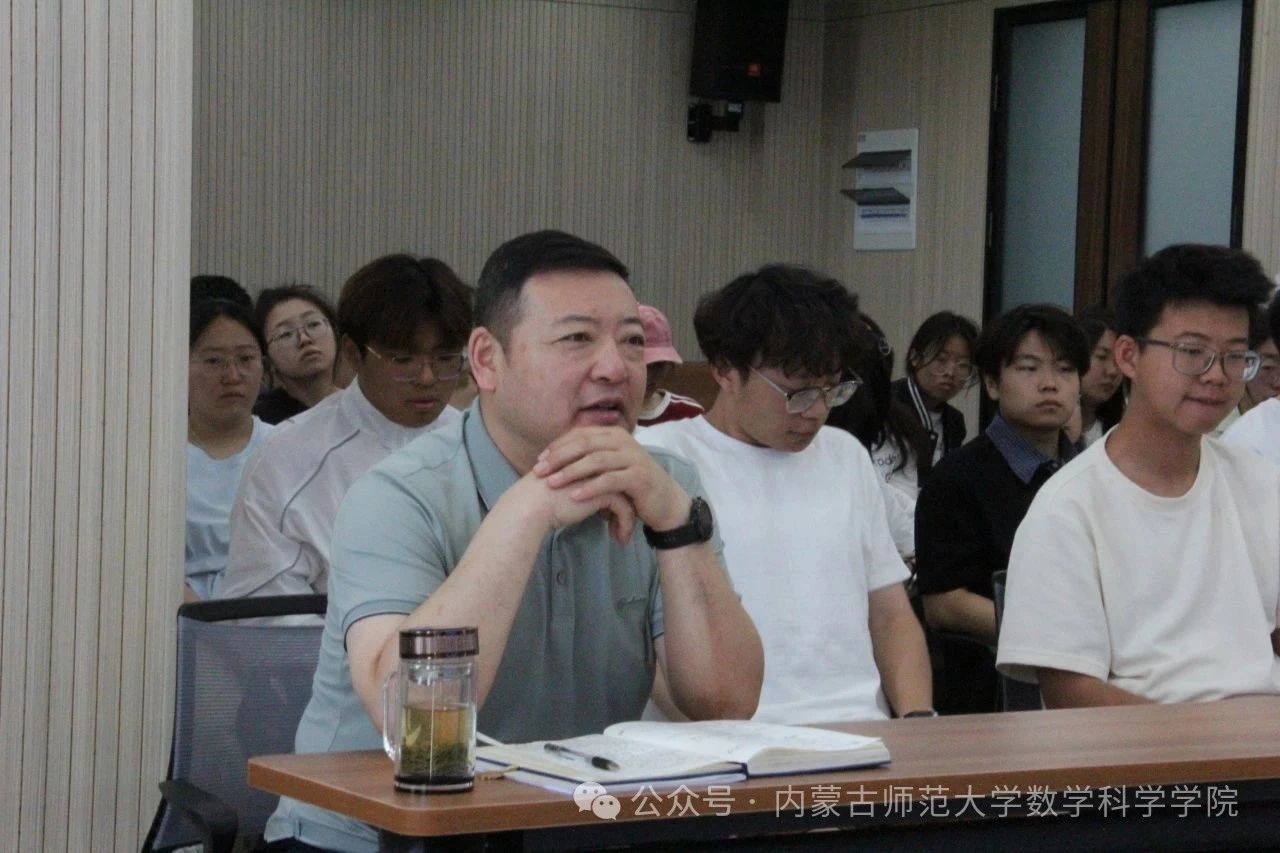 为深入贯彻党的二十大精神,坚持"党建带团建、团建促学风"的工作思路,充分发挥学生党团支部战斗堡垒作用,组织优秀学生在班级建设、学习规划和朋辈辅导等方面发挥领航作用,深入推进优良学风建设。6月6日,在盛乐校区学院楼C301举办数学科学学院"优秀学子领航计划·菁英汇之公费师范生专场沙龙"活动,本次活动由学院学生工作与就业办公室与学生第二党支部联合举办,学生第二党支部书记刘沙沙主持,学院党委书记张伟出席活动。