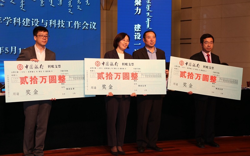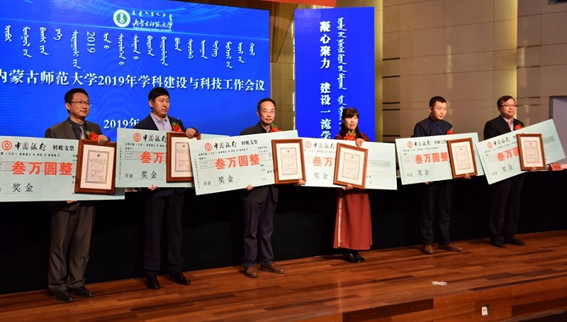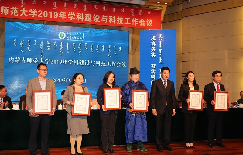 高云峰、刘九万和王来喜分别宣读《华体会网页版表彰在2017年学位授权审核工作中作出突出贡献的学科和单位的决定》《华体会网页版表彰内蒙古师范大学第二届科学技术创新奖和科技工作先进集体、先进个人的决定》《华体会网页版对重大科研成果及科研项目进行奖励的决定》。我院被评为学位授权审核工作中作出突出贡献的单位,荣获“科技工作先进集体”称号,李联和老师荣获青年科学技术创新奖。