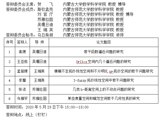 内蒙古师范大学数学科学学院2020届学术型研究生硕士学位论文答辩会(二)