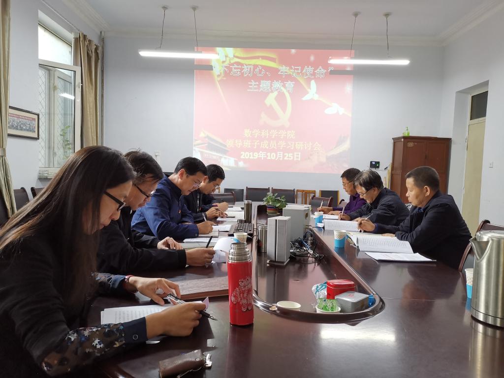 10月25日上午,数学科学学院领导班子成员围绕习总书记在中央政治局第十五次集体学习上的讲话和《中国共产党章程》两个方面开展了主题教育专题研讨。我校主题教育第五指导组克金布、包铁龙、周绍渊三位老师全程参与指导并布置了后续的工作。