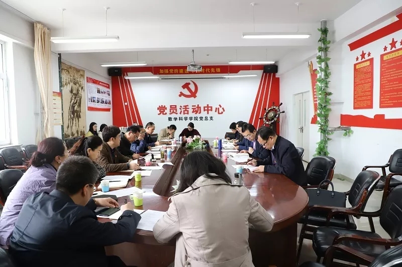 2019年10月15日,我校主题教育领导小组副组长、党委副书记、纪委书记高云峰,主题教育领导小组成员、党委委员、宣传部部长张宝成、组织部部长褚亚申深入数学科学学院调研指导工作,相关部门负责同志陪同调研。