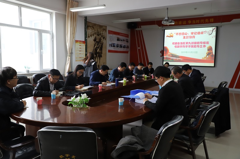 11月12日,自治区主题教育第九巡回指导组莅临我院检查指导工作。我校主题教育第五指导组克金布、学院领导班子成员、总支委员和各支部书记参加了座谈会。座谈会上,扎其劳书记详细汇报了学院主题教育开展情况,最后指导组成员给予了充分的肯定并提出了重要的指导意见。