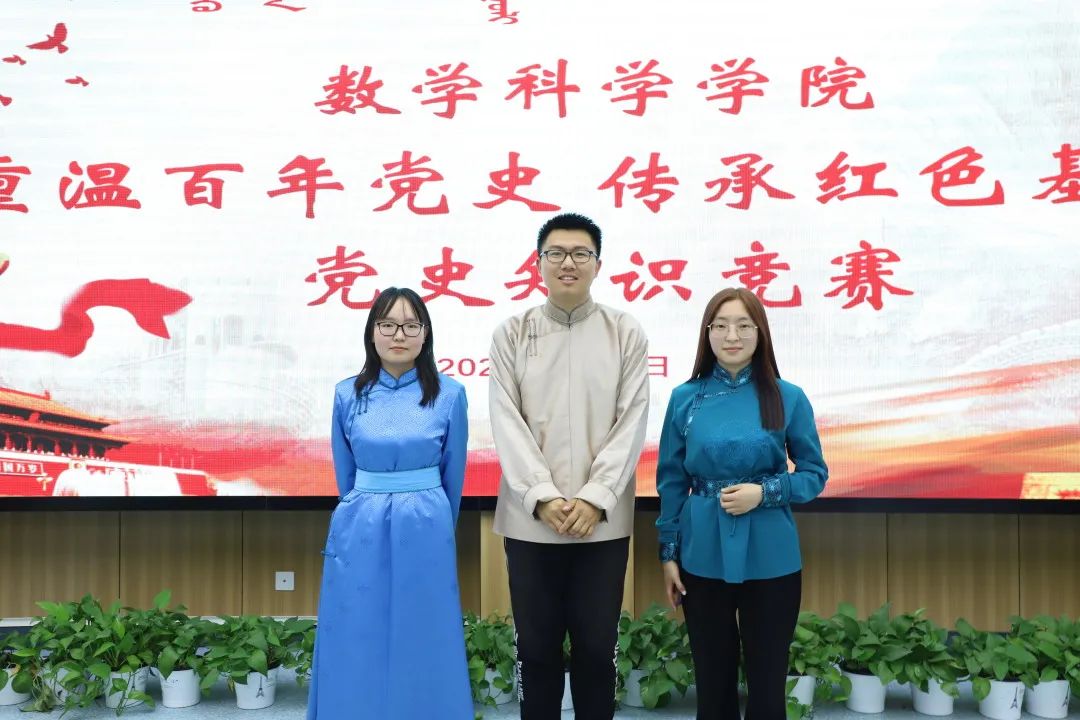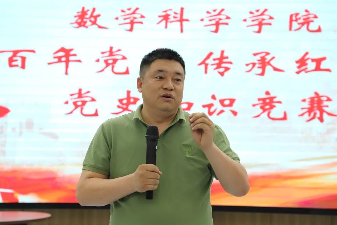 为迎接中国共产党百年华诞,营造学党史、知党情、跟党走的浓厚氛围,进一步丰富党史学习教育内容,以实际行动践行初心使命。2021年6月1日,数学科学学院于学生事务中心一楼报告厅举办以“重温百年党史,传承红色基因”为主题的党史知识竞赛活动,掀起党史学习教育热潮。