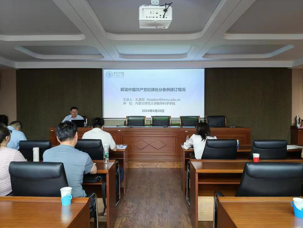 为深入学习领会习近平总书记华体会网页版全面加强党的纪律建设的重要论述,认真领悟贯彻新修订的《中国共产党纪律处分条例》,进一步推动党纪学习教育入脑入心、见行见效,6月20日下午,数学科学学院开展《中国共产党纪律处分条例》(以下简称《条例》)修订情况解读专题学习会,学习会由学院院长扎其劳主讲,学院党委委员、各支部书记以及全体辅导员参加学习。