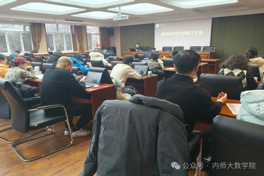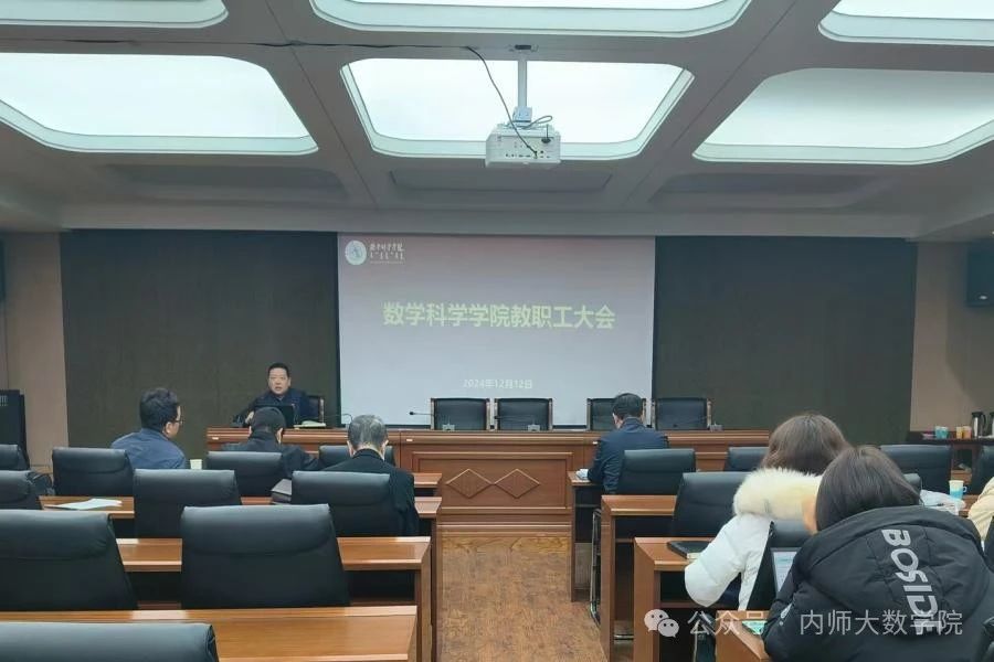 12月12日,数学科学学院在赛罕校区文史楼1号会议室召开全院教职工大会传达学习全区教育工作会议精神,学院党委班子、全院教职工参加会议,会议由学院党委书记张伟主持。
