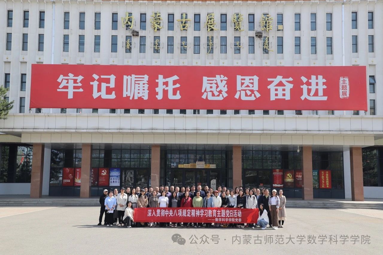 为锲而不舍落实中央八项规定精神,锤炼党员党性修养,4月17日,数学科学学院党委组织师生党员前往内蒙古展览馆,开展深入贯彻中央八项规定精神学习教育主题党日活动。