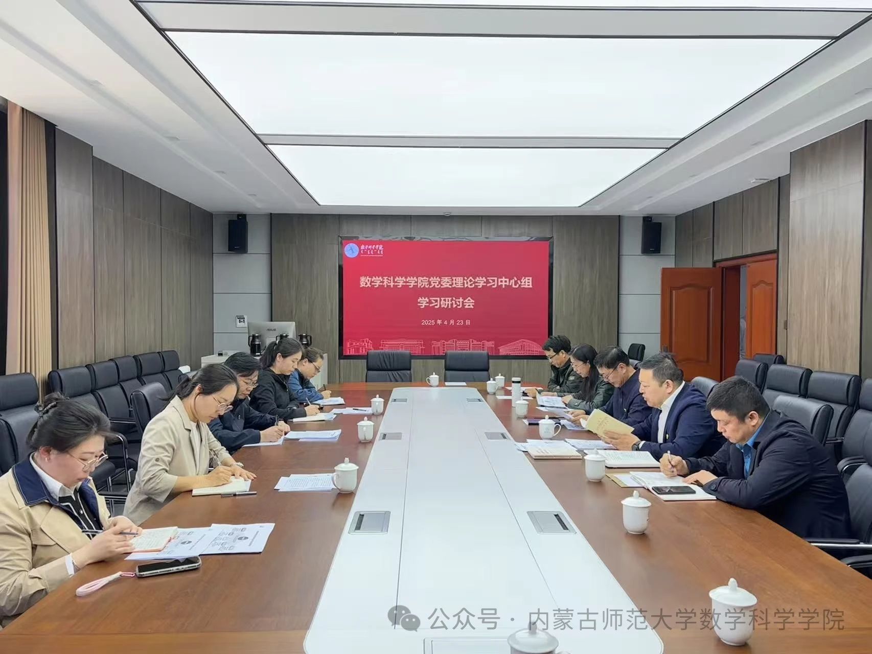 4月23日,数学科学学院党委理论学习中心组在盛乐校区学院楼C206会议室召开2025年度第四次集体学习研讨会,学院党委书记张伟主持会议,党委理论学习中心组成员、各支部书记参会。