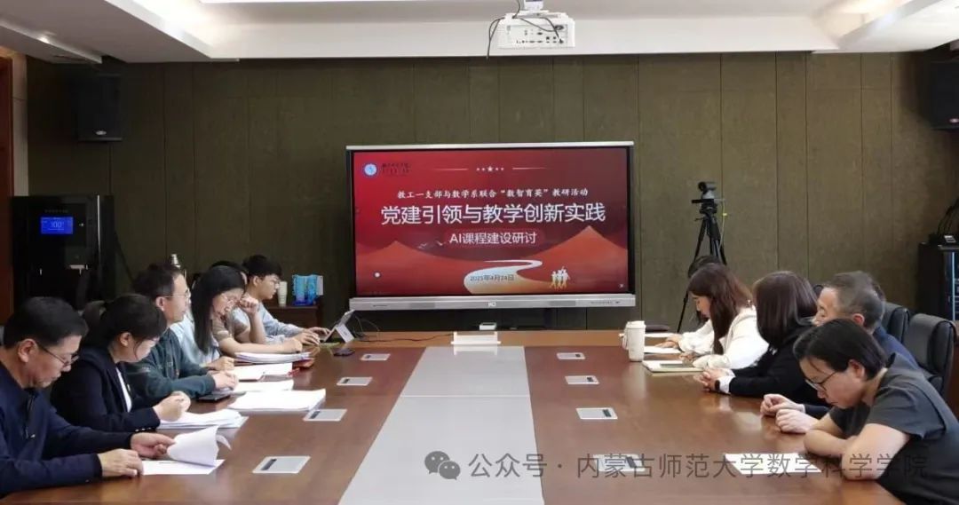 为推进国家教育数字化战略行动,深化大数据及人工智能技术应用,促进智能技术与教育教学、科学研究深度融合,推动人工智能赋能教育教育转型,实现信息技术与教育教学深度融合,进一步提升学校本科课程建设质量,适应数字化时代的发展需求,教工一支部联合数学系围绕“党建引领与教学创新实践——AI课程建设”开展“数智育英”教研活动。活动由教工一支部宣传委员、数学系主任乌日柴胡主持。