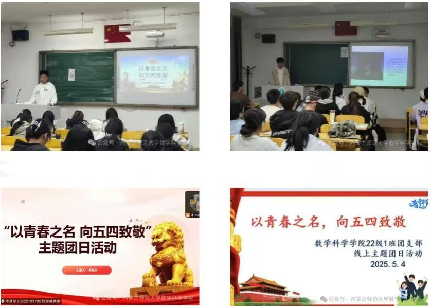 今年是五四运动106周年、中国共产主义青年团成立103周年。为深入学习贯彻习近平新时代中国特色社会主义思想和党的二十大精神,弘扬“爱国、进步、民主、科学”的五四精神,数学科学学院各团支部组织开展了五四青年节系列活动,引领团员青年在推进学校事业高质量发展以及维护北疆民族团结、促进地区发展中的火热实践中发挥积极作用,在祖国北疆绘就青年学子同心向党的青春之圆。