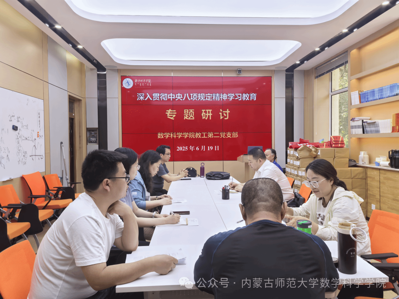 为扎实开展深入贯彻中央八项规定精神学习教育, 6月19日下午,学院教工第一党支部、教工第二党支部分别在赛罕校区文史楼1号会议室和114会议室召开了书记讲纪律作风党课暨支部党员交流研讨会,教工两个党支部党员参加会议,学院领导班子成员以普通党员身份参加各支部学习研讨。
