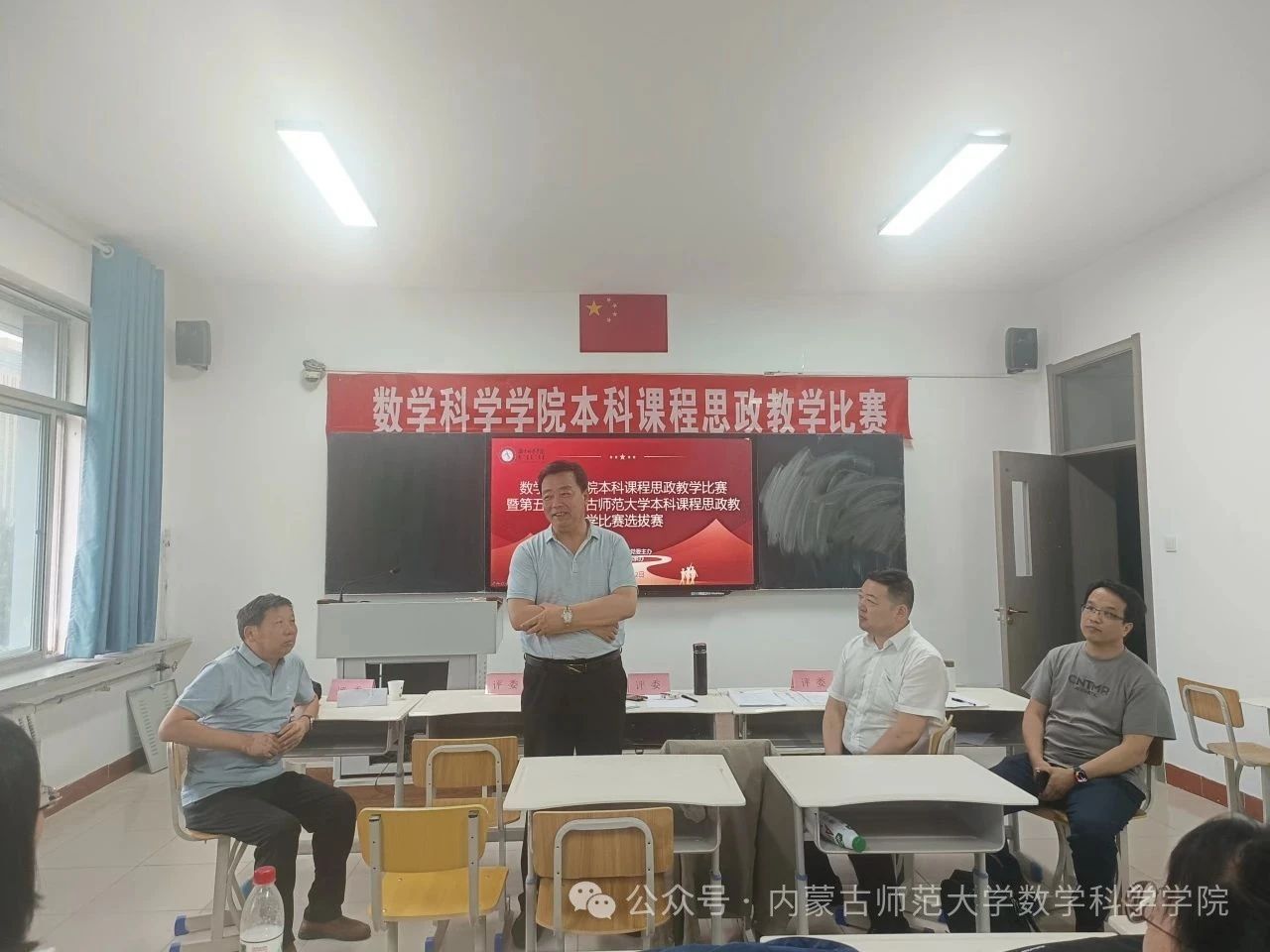 为深化课程思政建设,提升教师思政教学能力,6月12日下午,数学科学学院党委主办、教工一支部承办了学院本科课程思政教学比赛暨第五届内蒙古师范大学本科课程思政教学比赛选拔赛。本次赛事紧扣“思政育人”核心理念,为全院教师搭建了课程思政建设的交流实践平台。比赛特邀教务处副处长侯欣舒老师、化学与环境科学学院王喜贵教授、我院党委书记张伟老师、副院长萨和雅教授、毕力格图教授担任评委。本次比赛由教工一支部宣传委员、数学系主任乌日柴胡主持。