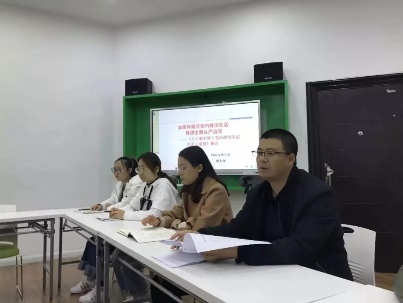 皮老师为团支部成员解读了习总书记提出的“四个意识、四个全面、四个自信”;以及“八字真经”和“十六字诀”,提出了对团员青年的要求和五点希望;并呼吁团支部成员学习习总书记的理论和发言。