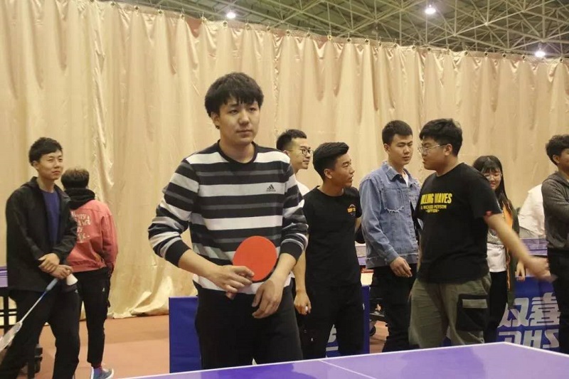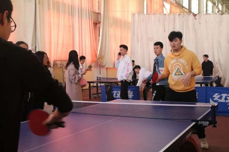 为丰富学生校园生活,全面提高大学生综合素质,加强大学生体育锻炼,内蒙古师范大学数学科学学院于2019年4月3日晚在体育馆举办乒乓球比赛。
