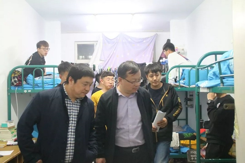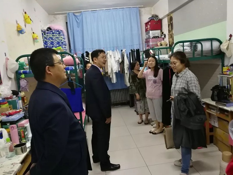 2019年5月5日晚,数学科学学院党总支书记扎其劳教授,学院院长刘官厅教授,学院副院长李联和教授,学院副院长包霞老师,,学院党总支副书记、副院长季建光老师,学院团总支书记皮建东老师,学院思想政治辅导员李帅老师,刘沙沙老师深入到我院学生宿舍进行五一假期后开学返校情况及宿舍安全大检查。