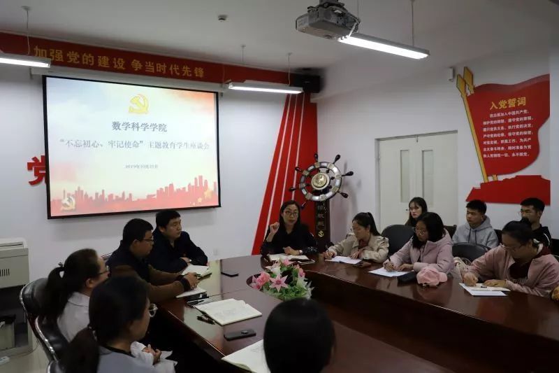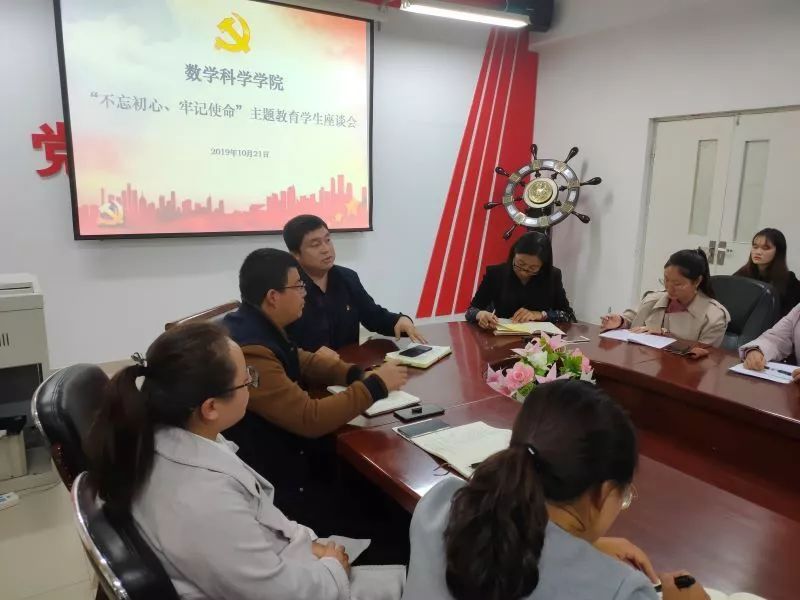 2019年10月21日,数学科学学院于学院楼会议室召开“不忘初心,牢记使命”主题教育学生座谈会。