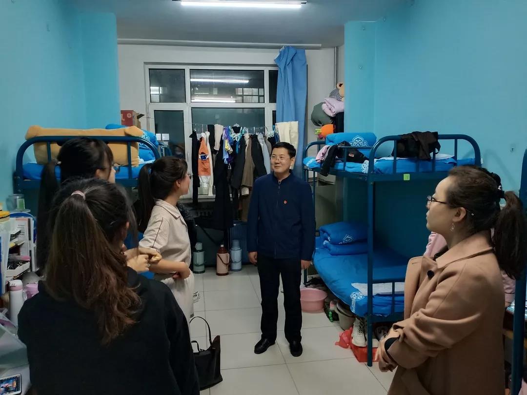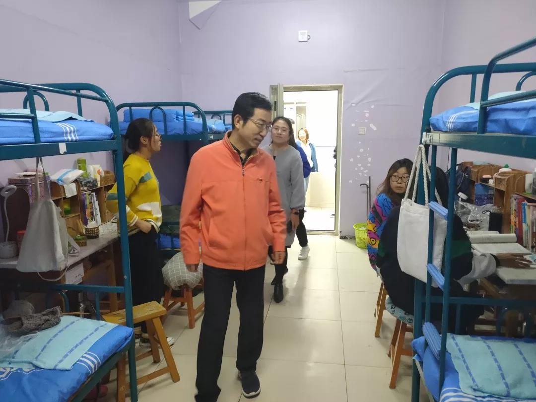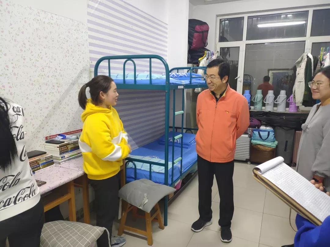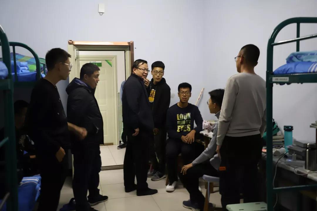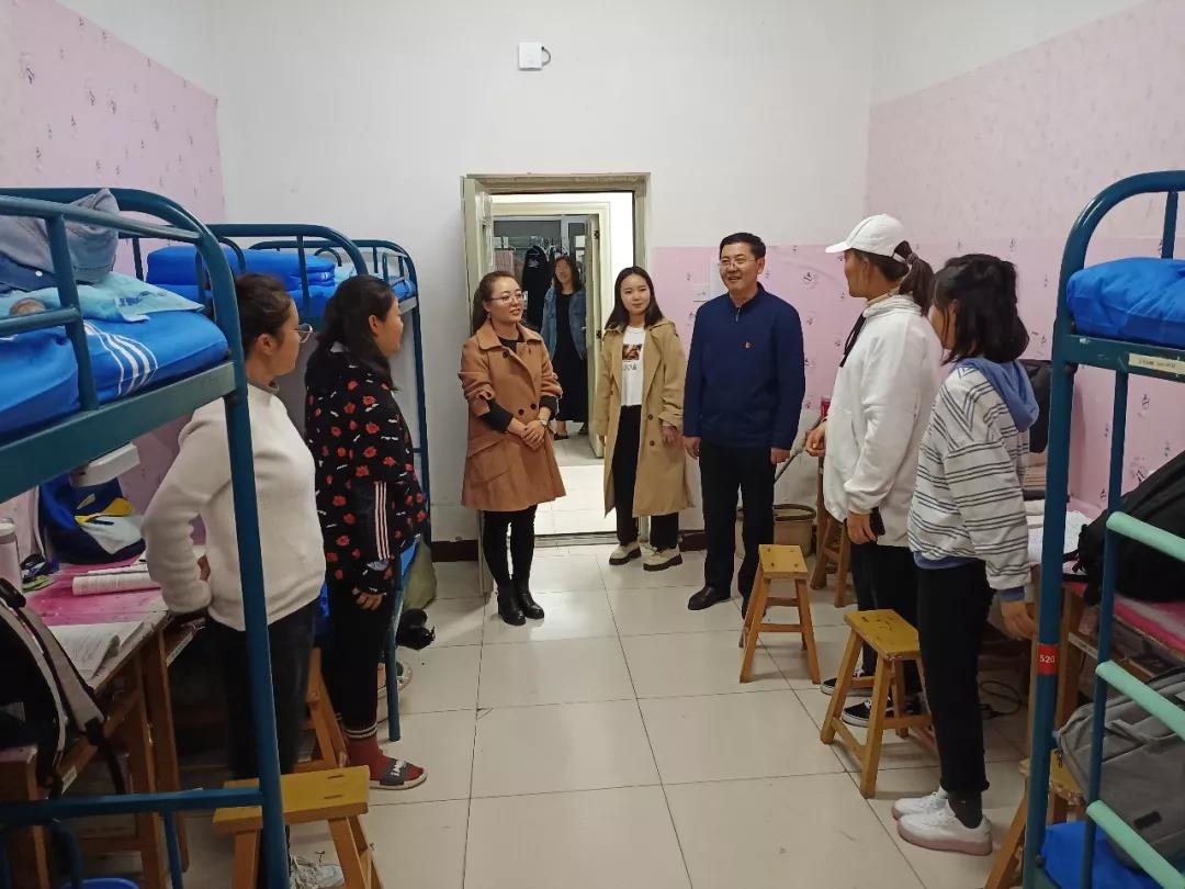 2019年11月4日,数学科学学院党总支书记扎其劳老师、院长刘官厅老师、党总支副书记、副院长季建光老师、副院长包霞老师、副院长李联合老师、学生辅导员李帅老师、刘沙沙老师来到学生宿舍进行安全卫生检查,亲切询问同学们生活、学习等情况。