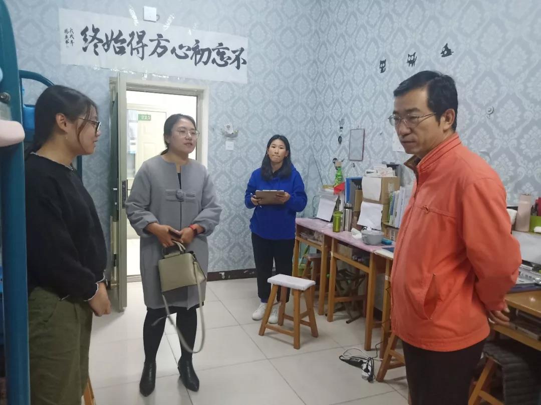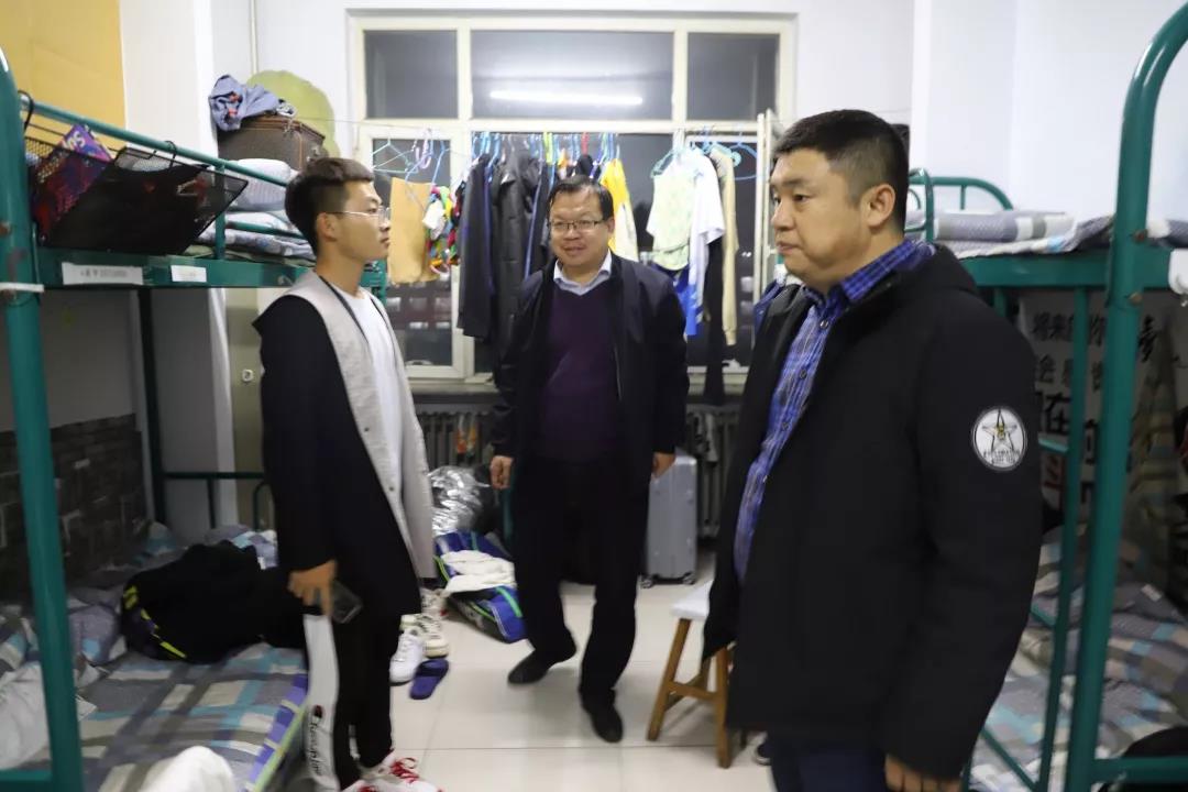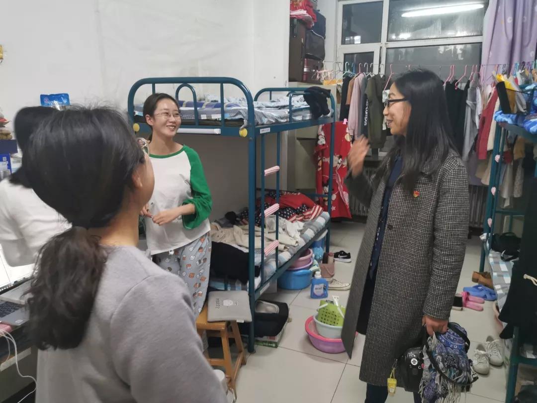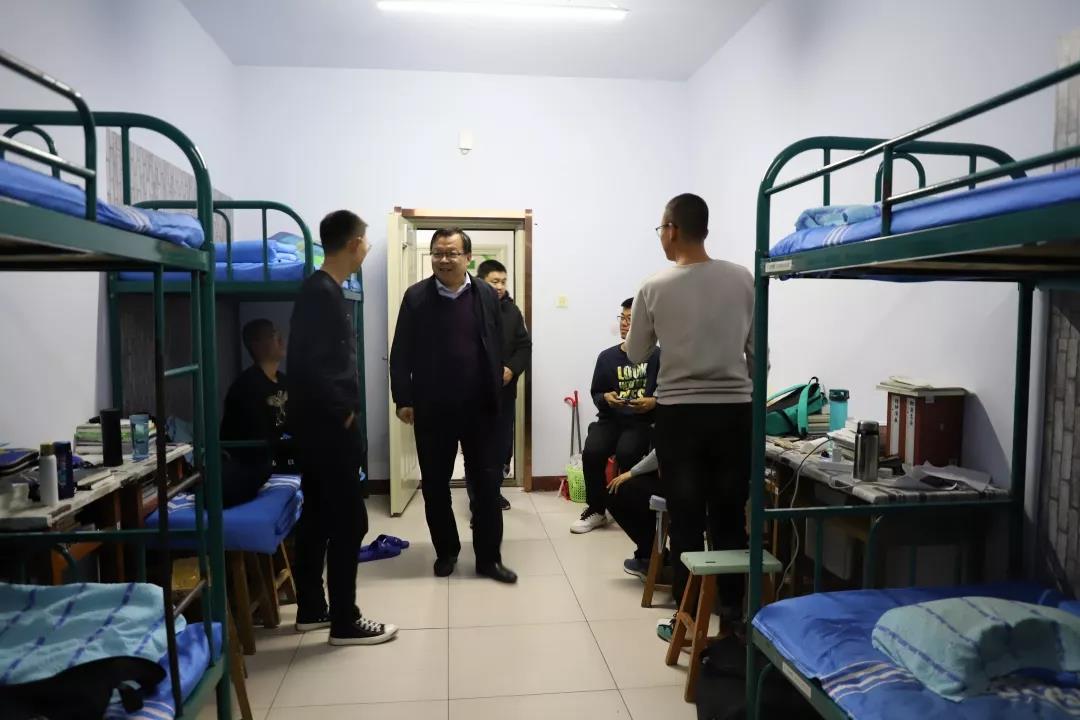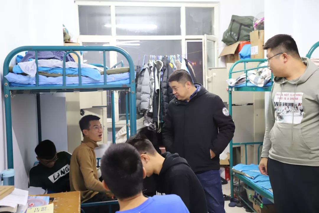 2019年11月4日,数学科学学院党总支书记扎其劳老师、院长刘官厅老师、党总支副书记、副院长季建光老师、副院长包霞老师、副院长李联合老师、学生辅导员李帅老师、刘沙沙老师来到学生宿舍进行安全卫生检查,亲切询问同学们生活、学习等情况。