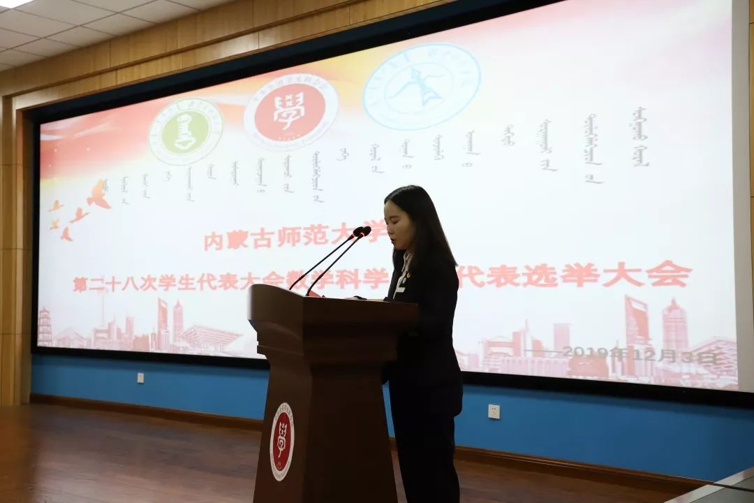 内蒙古师范大学第二十八次学生代表大会数学科学学院代表选举大会由我院学生会副主席马晓婷主持。