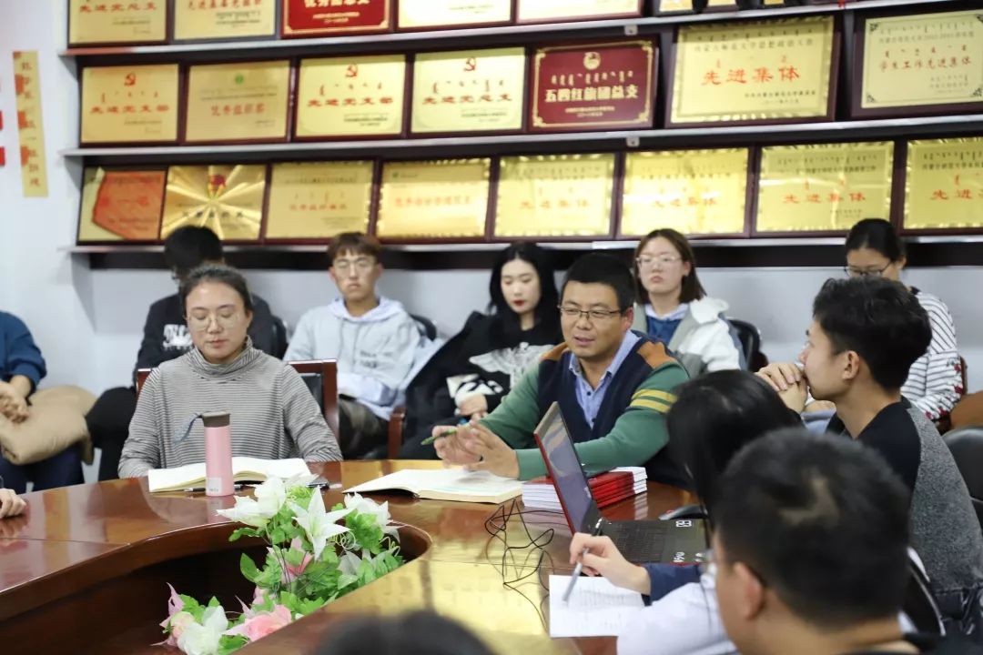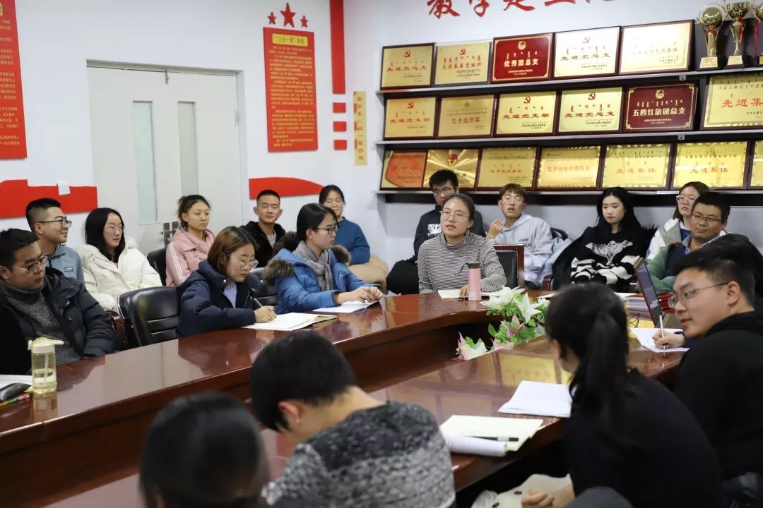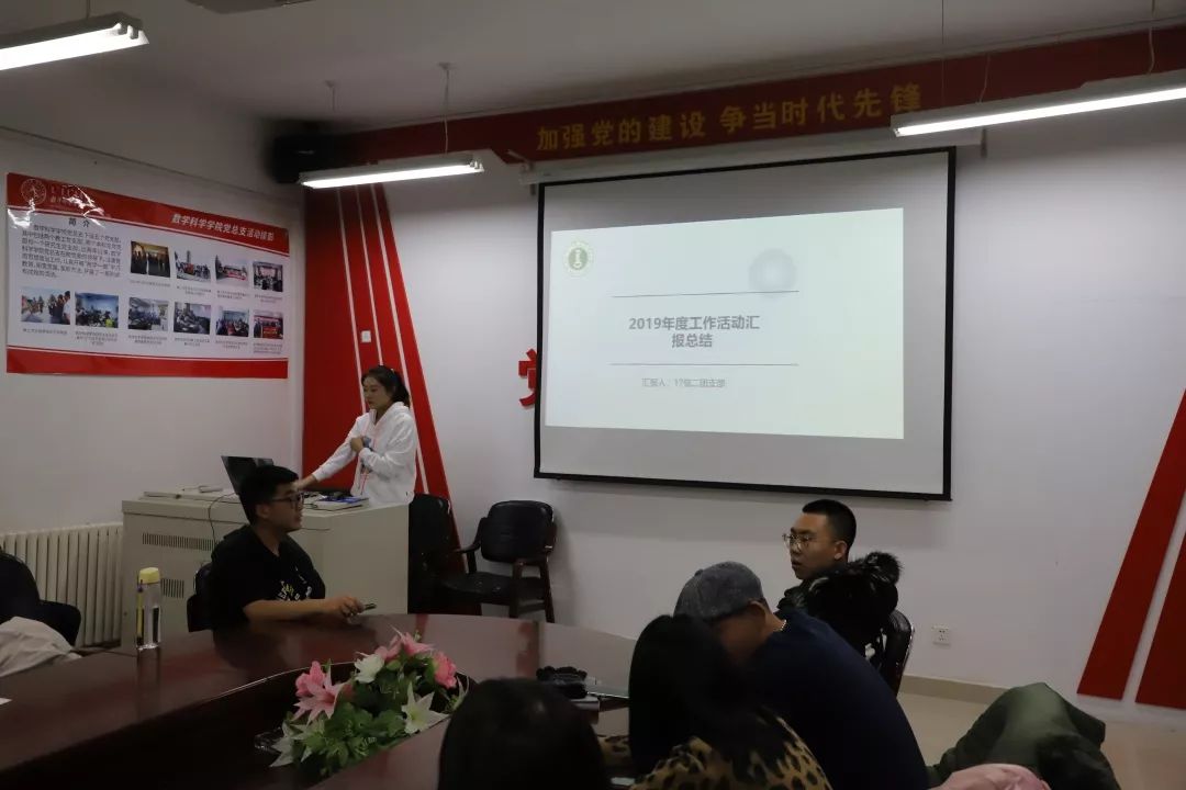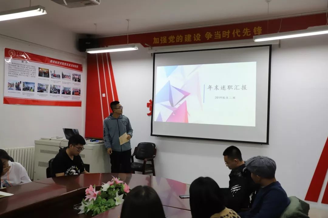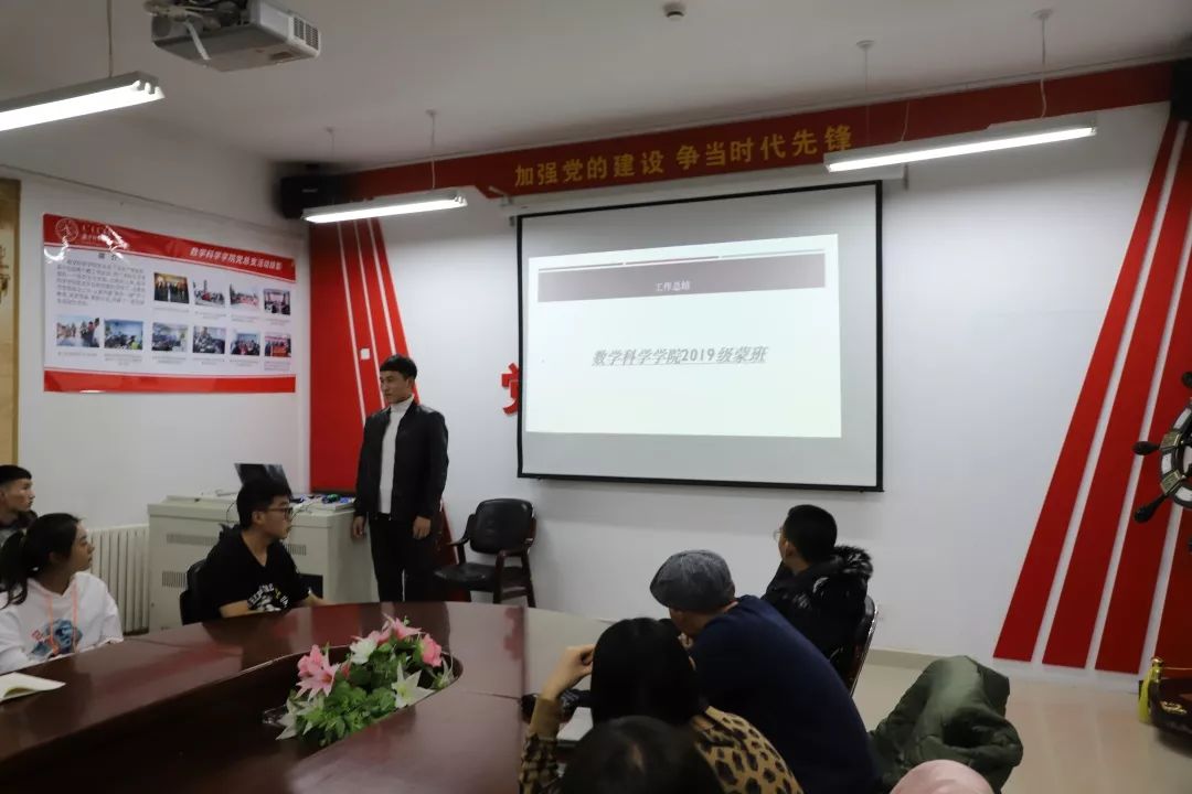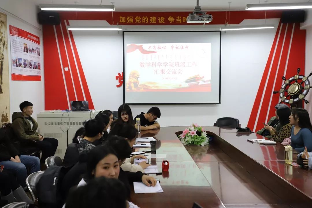 2019年12月9日,数学科学学院于学院楼会议室开展班级工作汇报交流会,交流会上,各团支部就本学期进行的工作进行了总结,反思与总结了本学期工作开展的优缺点,并对下学期的工作做出计划。学院团总支书记皮建东老师、学生辅导员李帅老师出席此次交流会。
