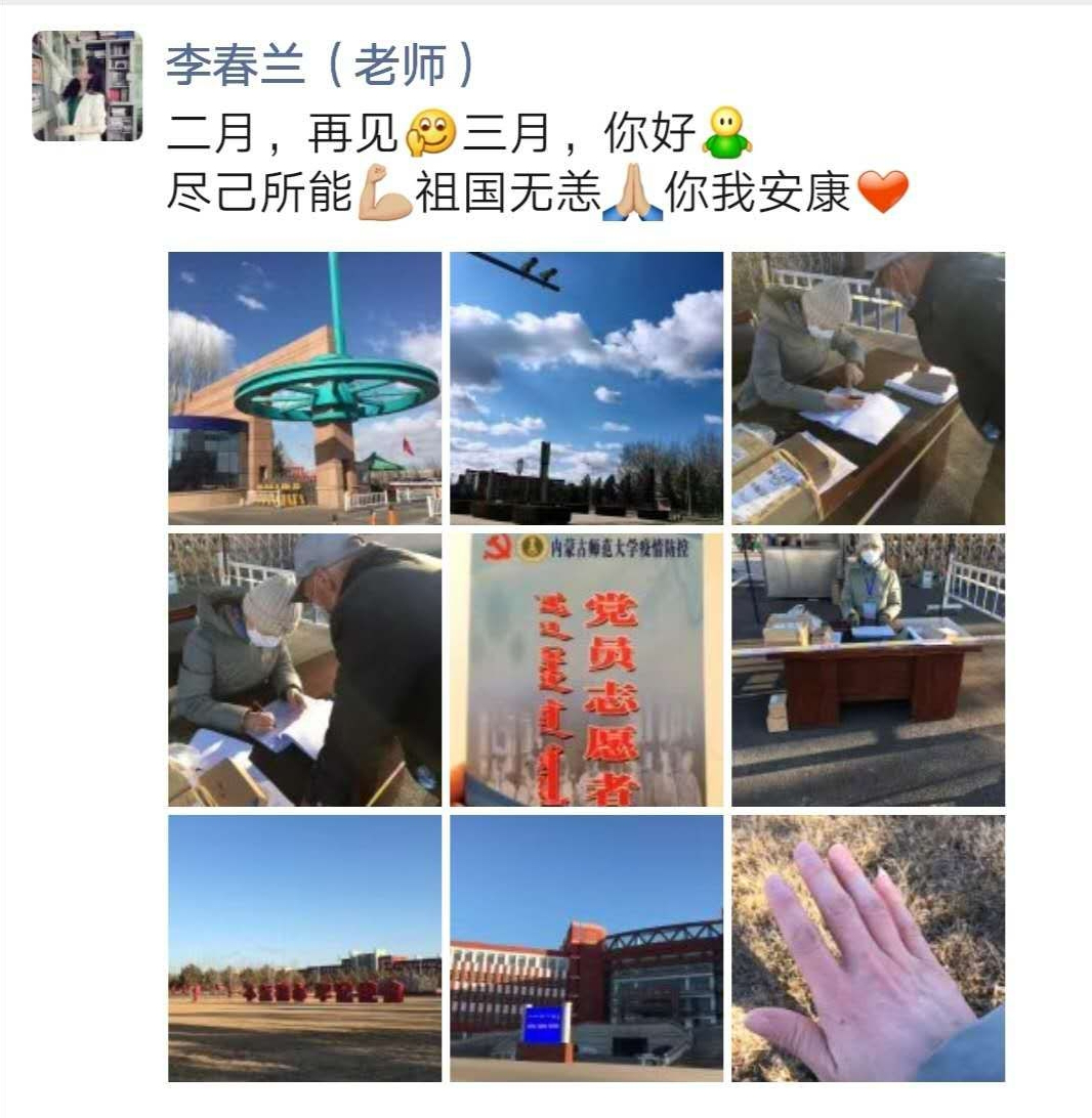 与二月告别,与三月紧紧相拥,“尽己所能,祖国无恙,你我安康”,这是李春兰老师心中所盼,更是你我共同的期望!
