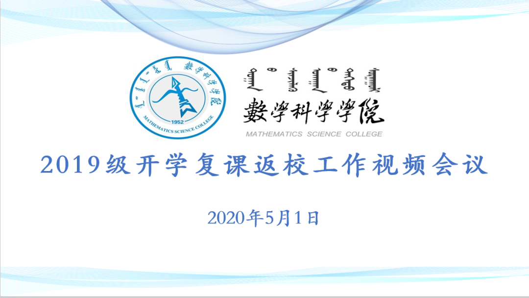 根据我校2020年春季学期学生开学复课部署会安排,数学科学学院于2020年5月1日通过腾讯会议召开2019级开学复课返校工作视频会议,参会人员包括学院领导班子成员、全体辅导员、19级班主任和全体19级学生。