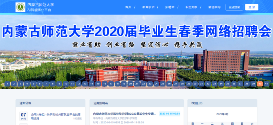 4. 登录后在企业后台点击右上角招聘会信息→选择线上双选会→选择内蒙古师范大学数学科学学院2020届毕业生专场空中双选会→发布招聘职位信息后点击提交即可。