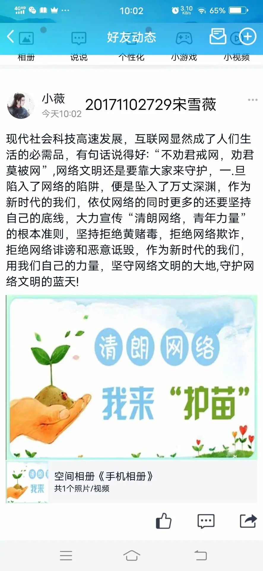 为响应我校“学雷锋活动月”志愿服务活动,推动网络生态天朗气清,3月20日至23日我院积极组织各班开展“清朗网络•青年力量”主题团日活动。同学们积极发表看法,为构建良好的网络生态做出自己的贡献。