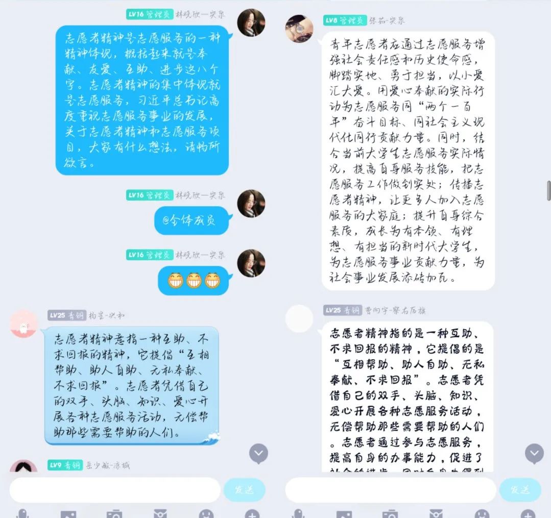 同学们在线上畅所欲言,说出自己对志愿服务的想法,并进行了投票。