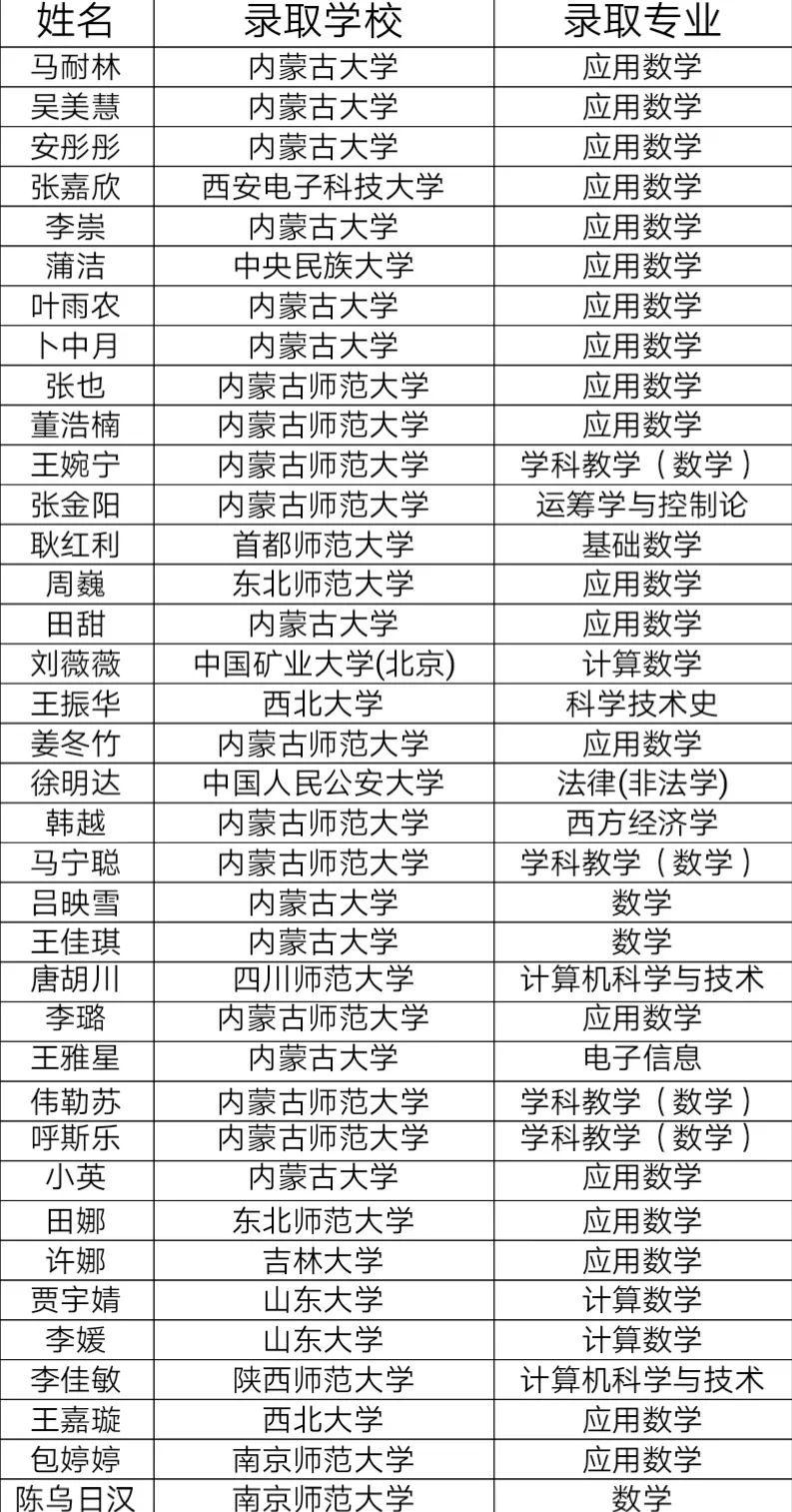 2020年,内蒙古师范大学数学科学学院成功考上博士研究生3人、硕士研究生37人,其中上国家分数线27人,上少数民族分数线1人,保研人数8人。