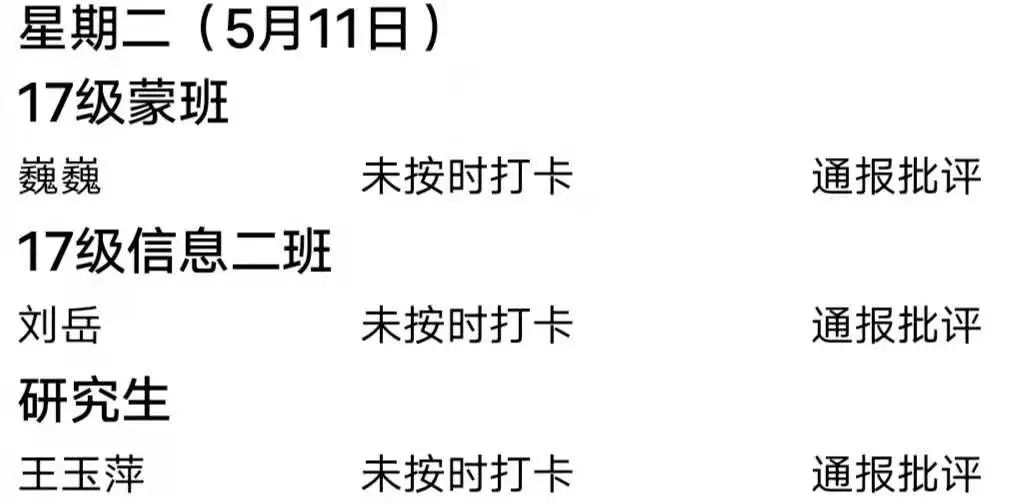 第十一周升旗迟到情况