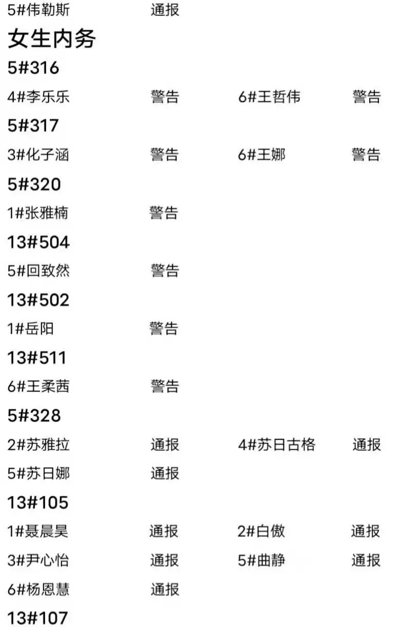 第十一周夜不归宿情况