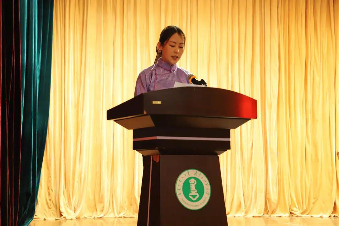 19级蒙班道日苏拉同学宣读诚信考试倡议书。