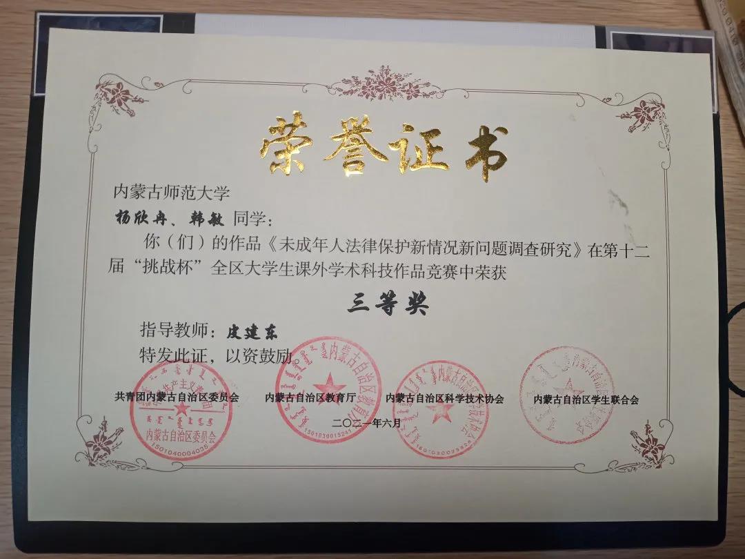 第十二届“挑战杯”全区大学生课外学术科技作品竞赛,我院同学取得二等奖一项,三等奖两项。