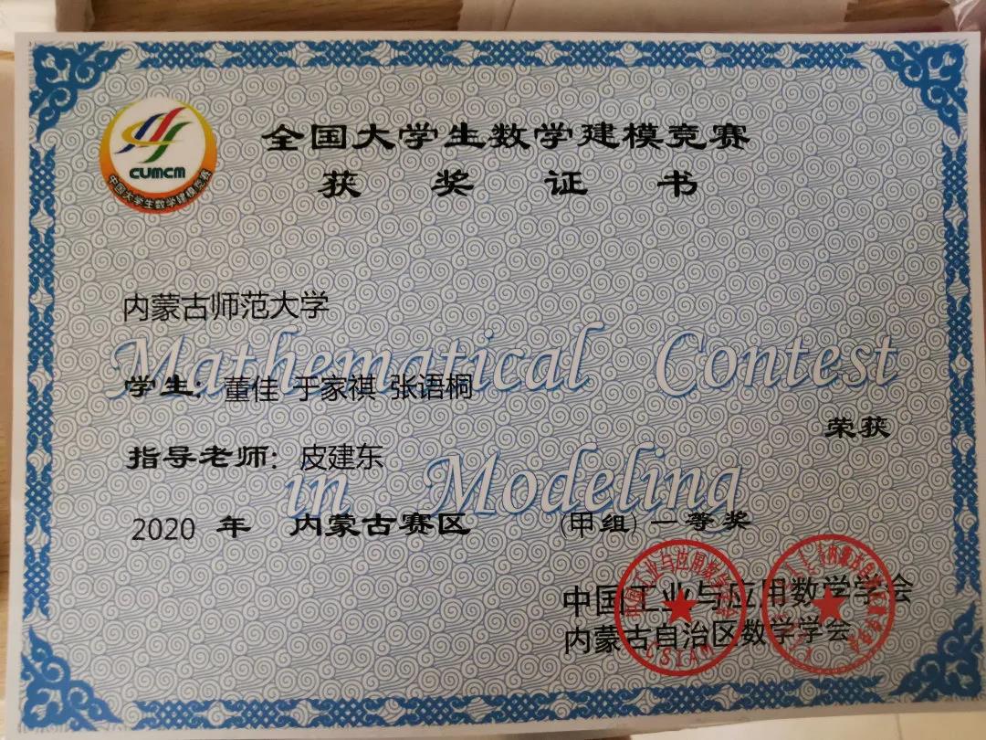 2020高教杯全国大学生数学建模竞赛我院包揽全国二等奖2项,赛区一等奖10项,二等奖12项,三等奖8项。