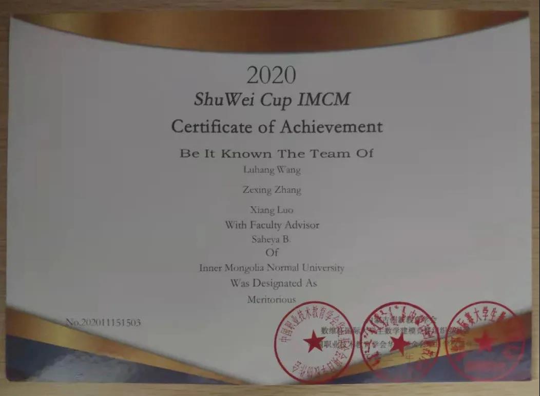 第五届数维杯大学生数学竞赛国际赛,我院王路航、罗翔、张泽兴获得佳绩!