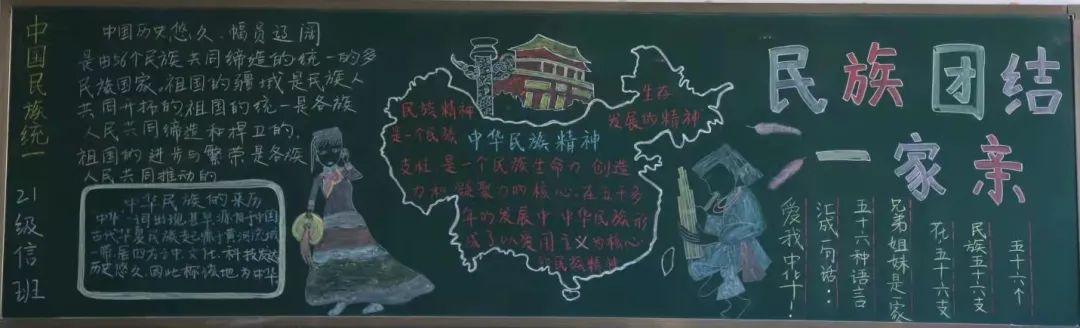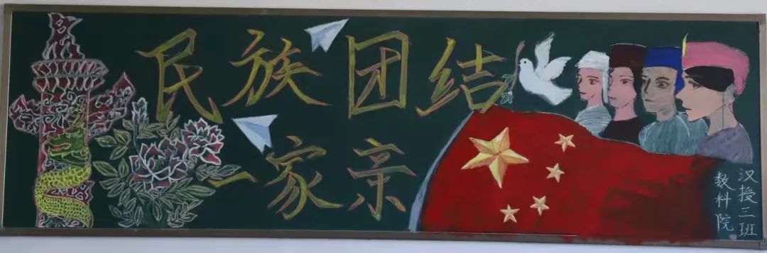 为了进一步铸牢中华民族共同体意识、助力中华民族的伟大复兴,数学科学学院组织21级学生以“民族团结一家亲”、“铸牢中华民族共同体意识”为主题进行板报绘画,并对各参展作品进行评比。