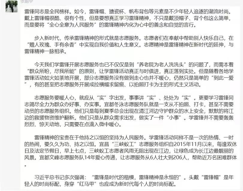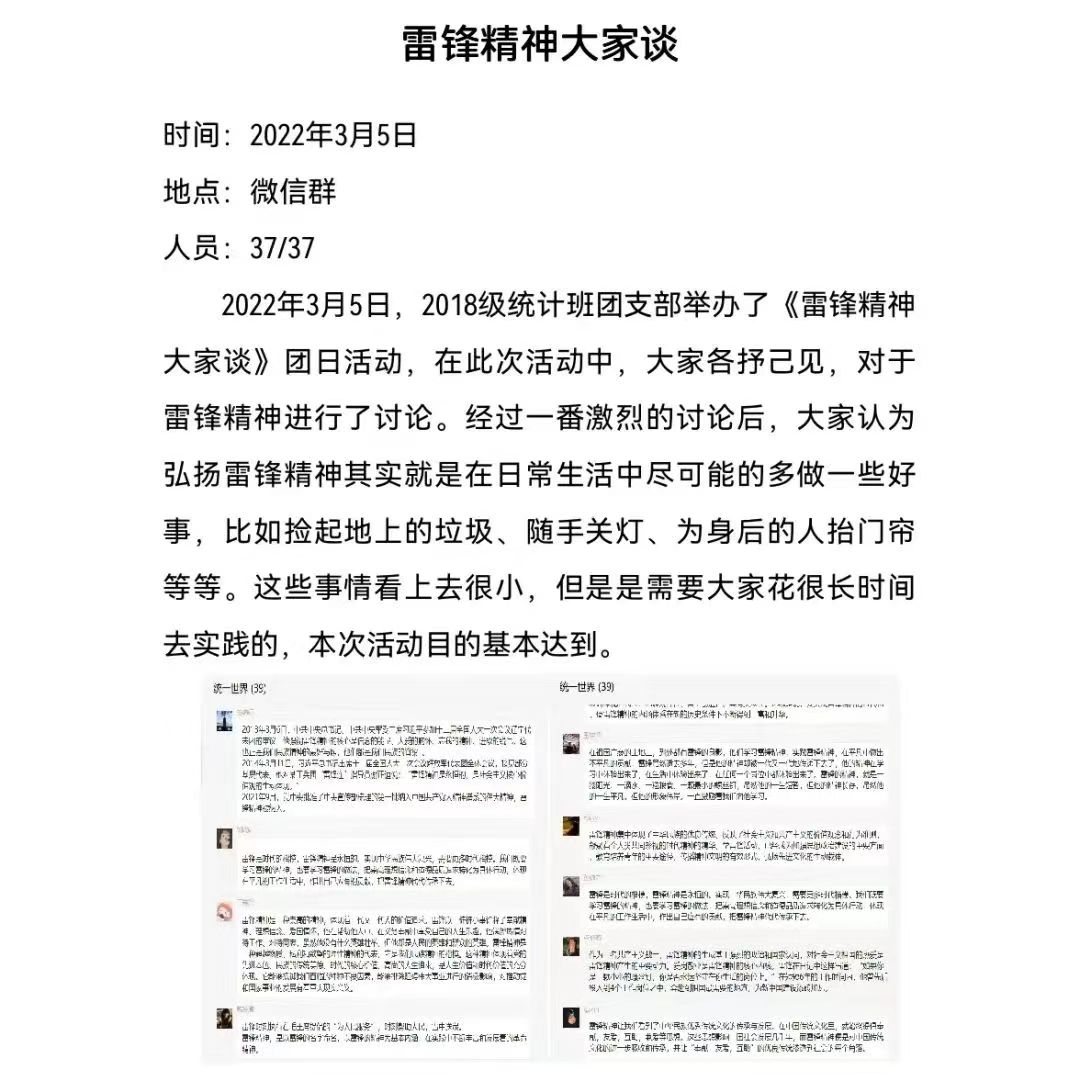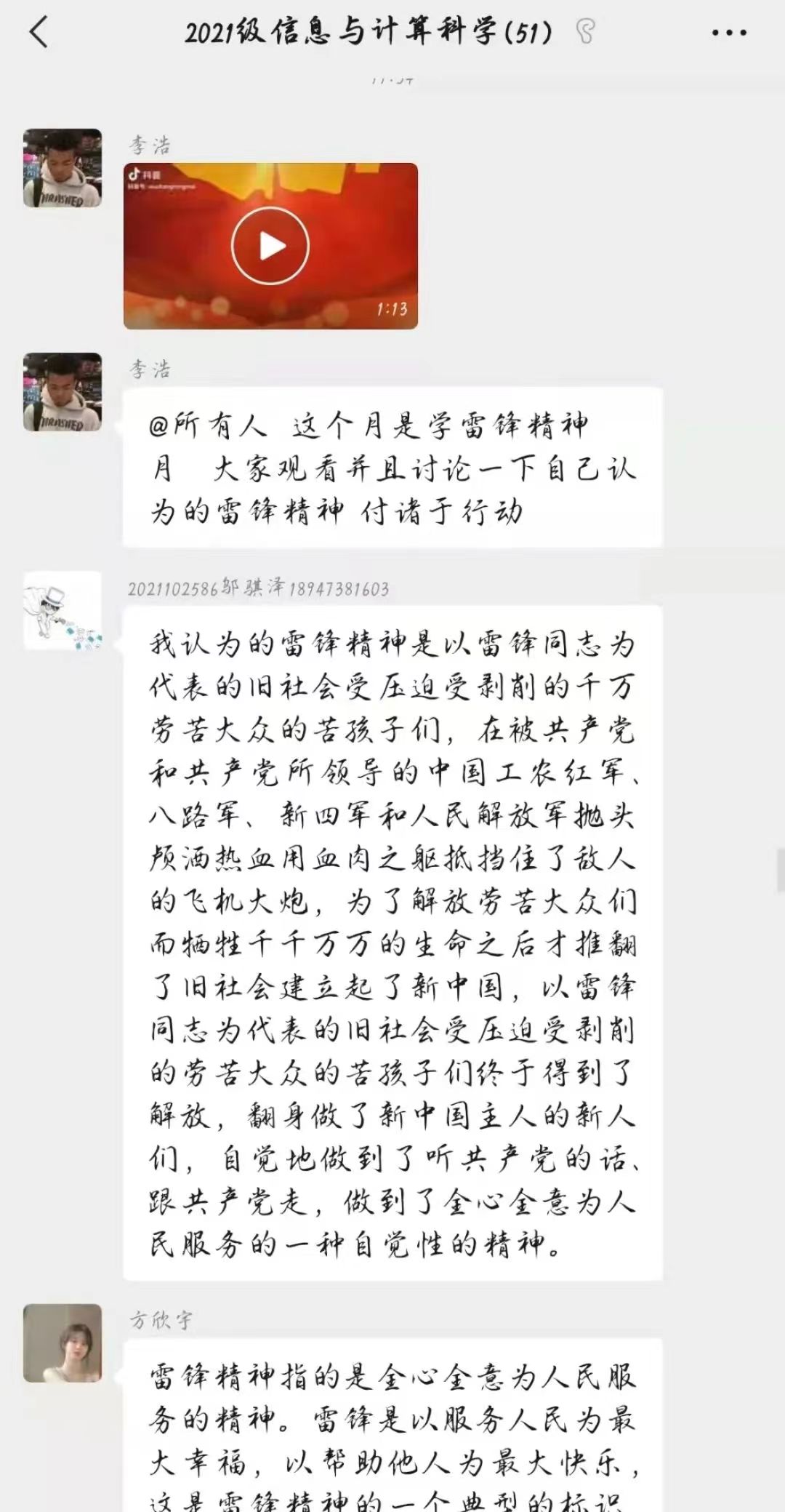 在3月5日雷锋同志纪念日这一天,数学科学学院组织各班进行“雷锋精神大家谈”主题班会,旨在激发大学生学习雷锋精神、保卫雷锋精神的热情。