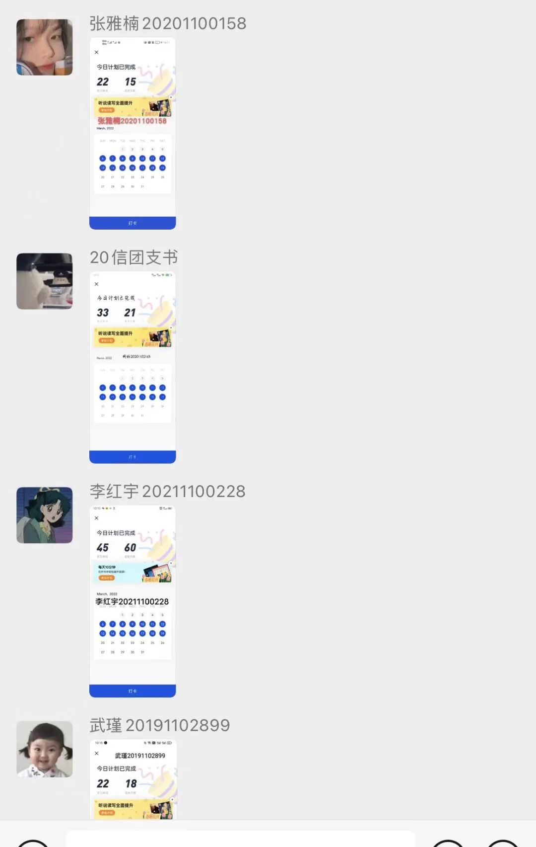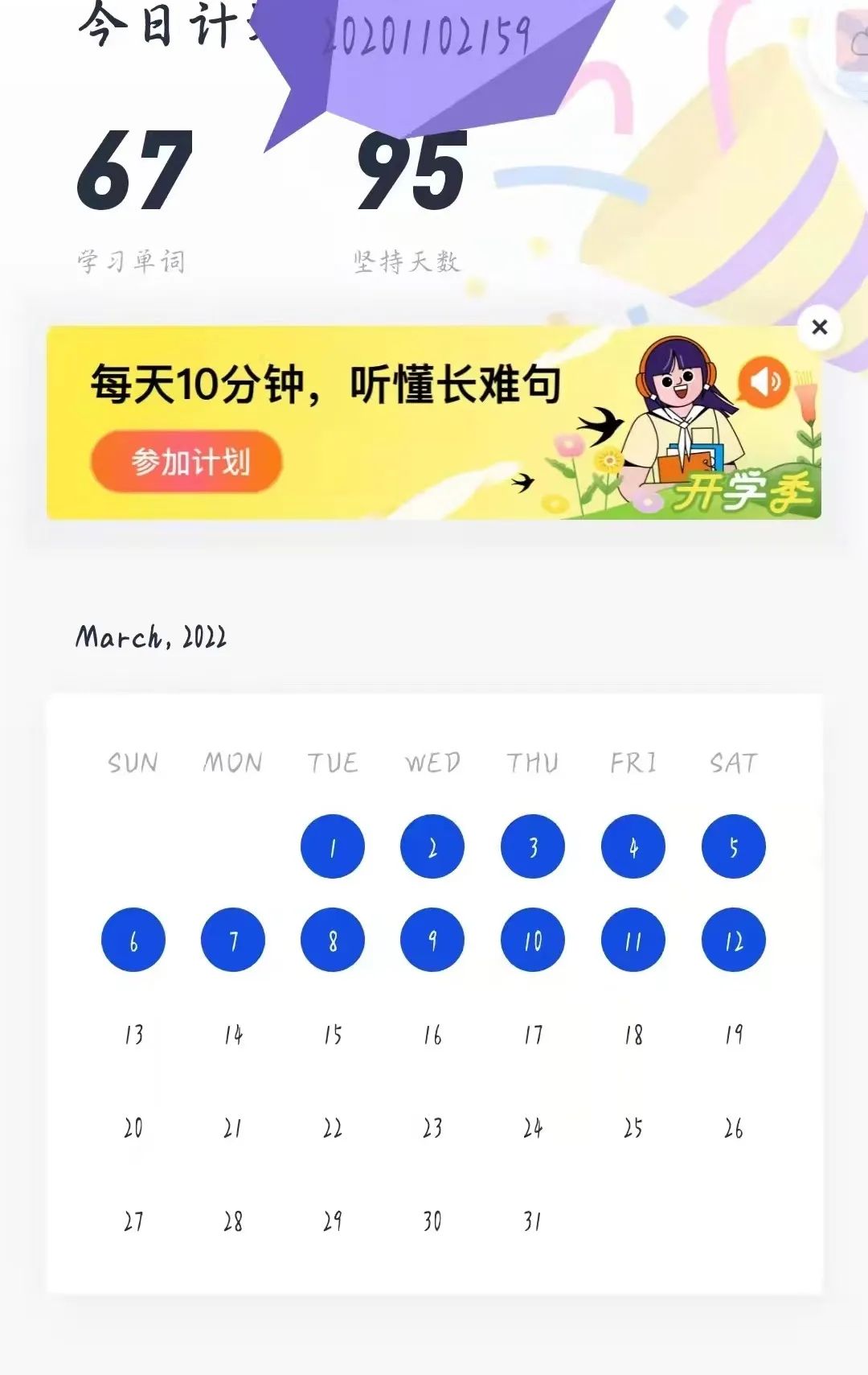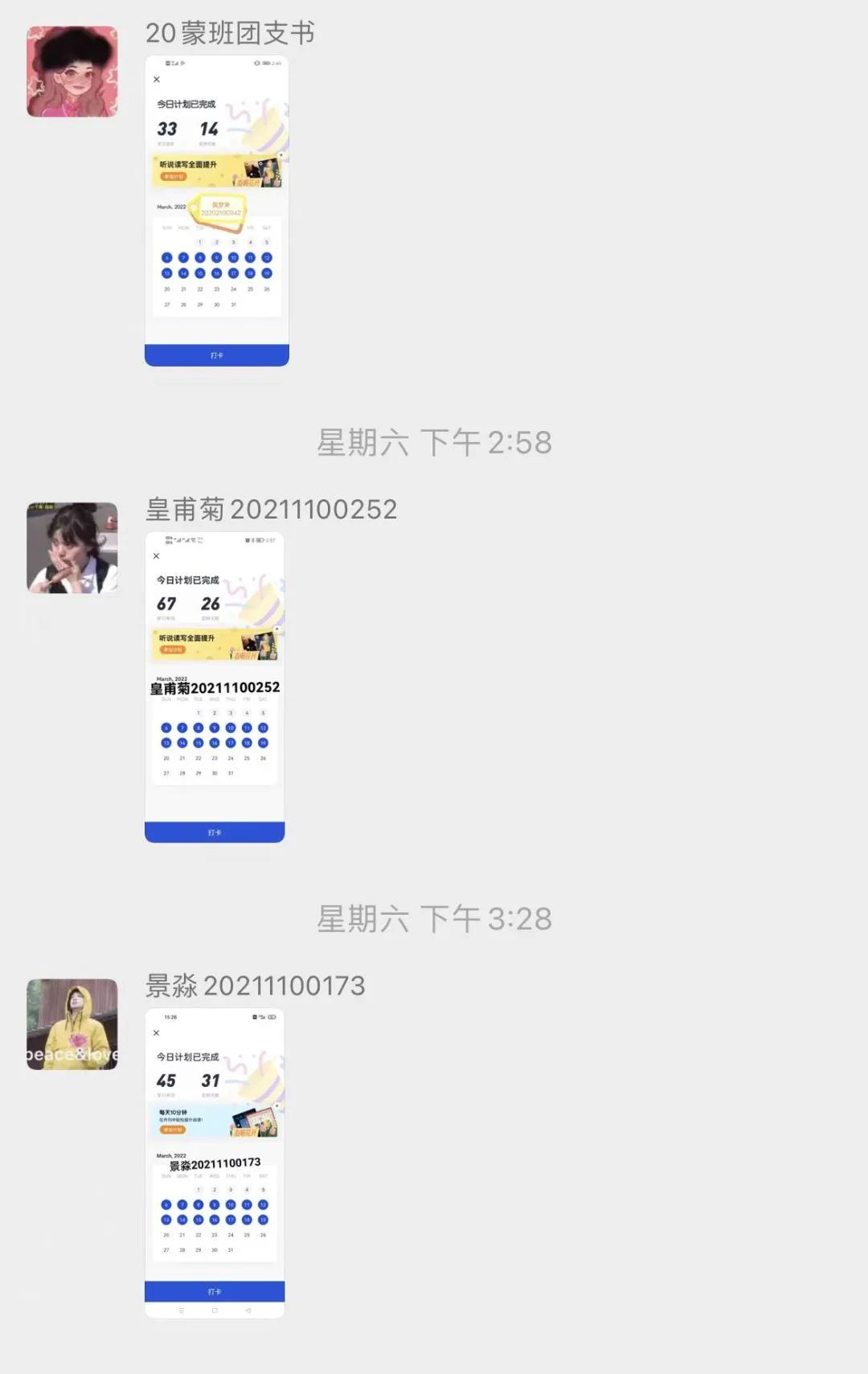 为了丰富学生的居家学习生活,提高学生的学习自觉性,数学科学学院开展了“学习解疫,提升有我”的英语单词打卡活动,150名学生积极响应活动,进行打卡学习。
