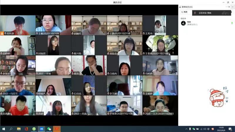 根据学校疫情防控要求,数学科学学院各班于6月6日晚上19:00召开主题班会,班主任将疫情防控工作、学生返校政策、放假开学时间安排、期末考试考风考纪、假期安全事项和学生思想教育等内容传达给班级学生。