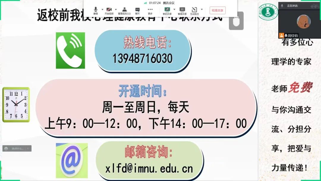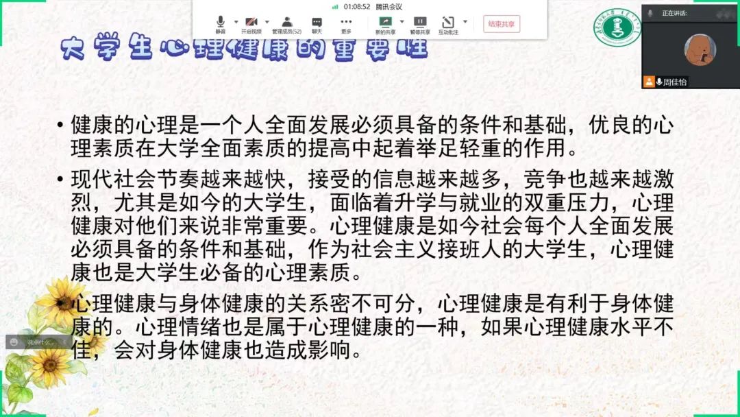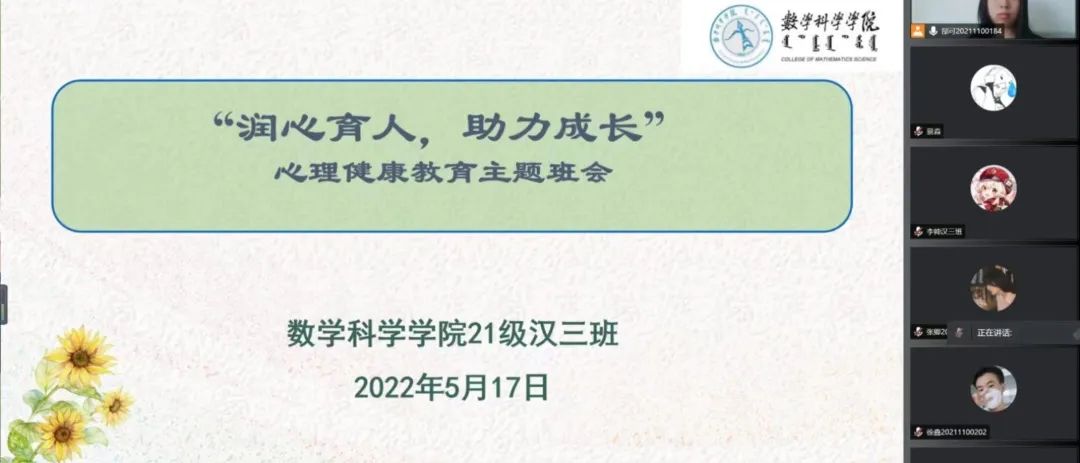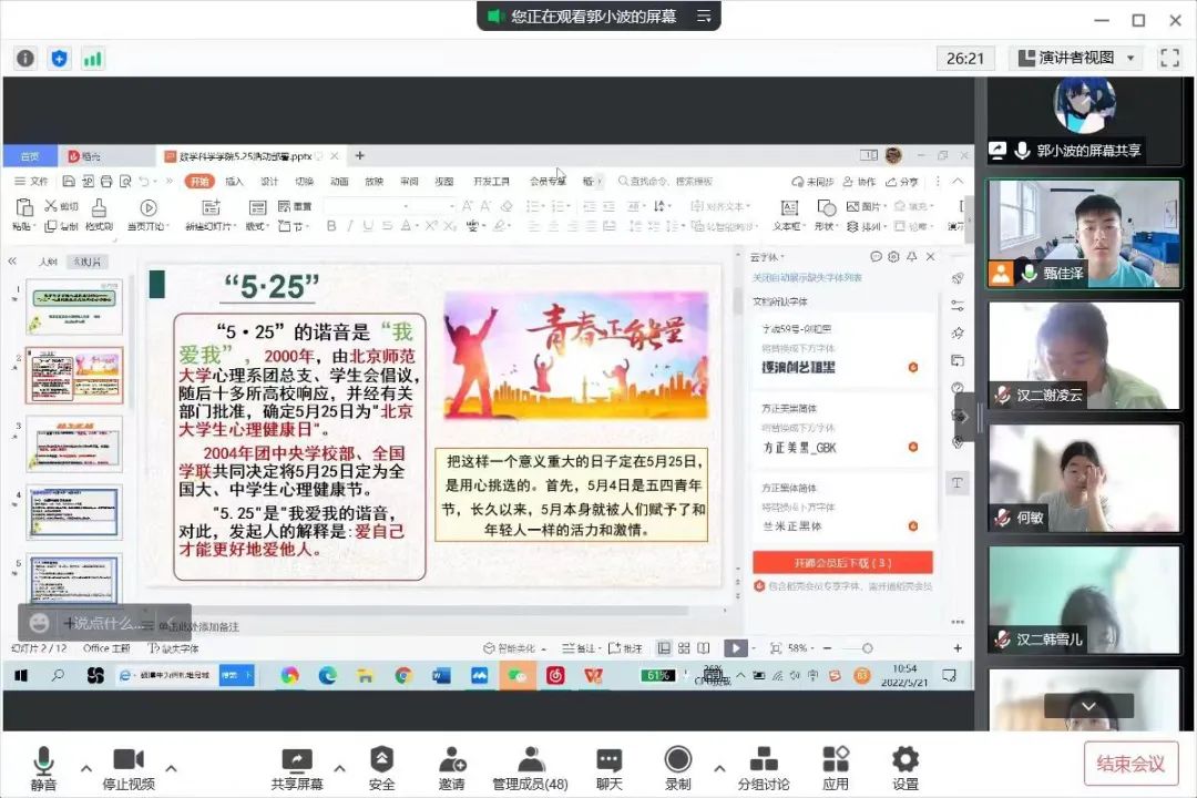 为深入推动大学生心理健康教育,在大学生群体中普及心理健康知识,引导大学生积极主动地关注自身心理健康,促进大学生健康全面发展,我院于5月16日—5月24日召开“润心育人,助力成长”心理健康主题班会,向同学们介绍5.25大学生心理健康日的由来、大学生心理健康的重要性、学校心理健康教育的服务机构以及服务内容、介绍心理健康的重要性等,保障同学们能够度过一个愉快的大学生活。