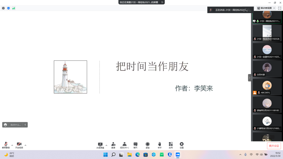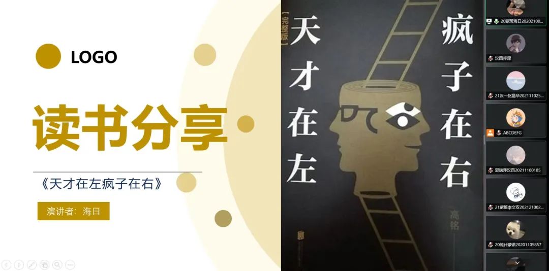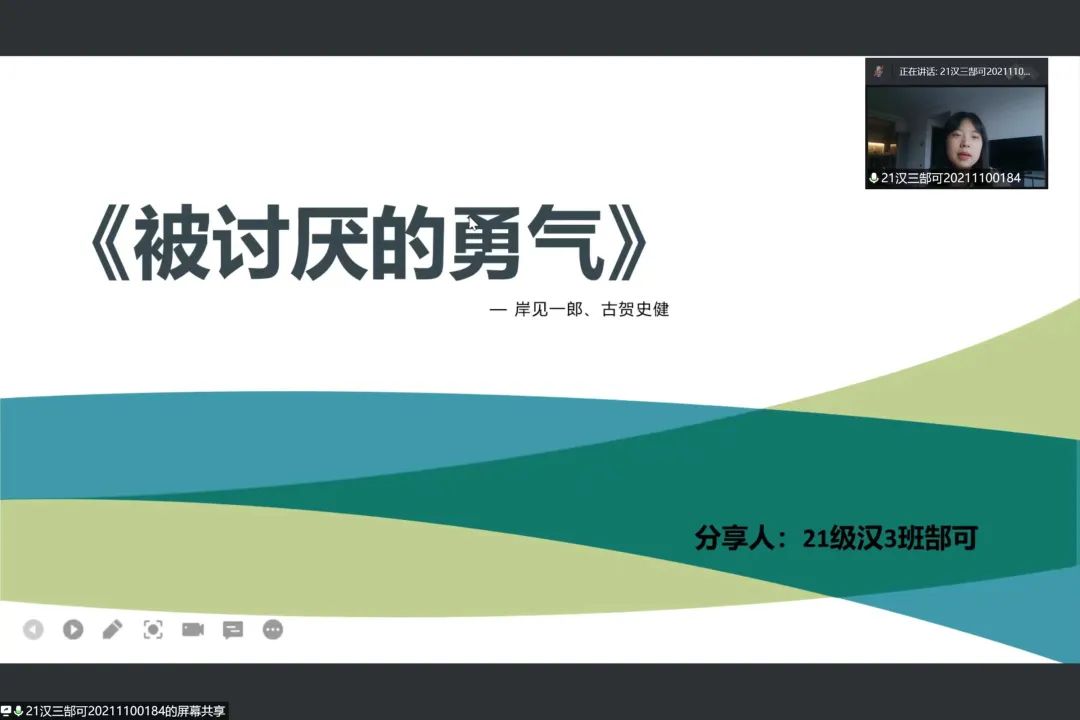 为积极响应“内蒙古师范大学第二十一届5·25心理健康教育宣传月活动”,增强大学生心理调适能力,我院于5月30日开展心理健康读书分享会,由各班心理委员分享与心理健康有关的书籍。