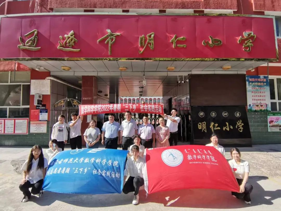 为引导广大青年学生在社会实践中“受教育、长才干、作贡献”,数学科学学院2022年暑期“三下乡”社会实践活动于7月15日走进通辽市明仁小学。