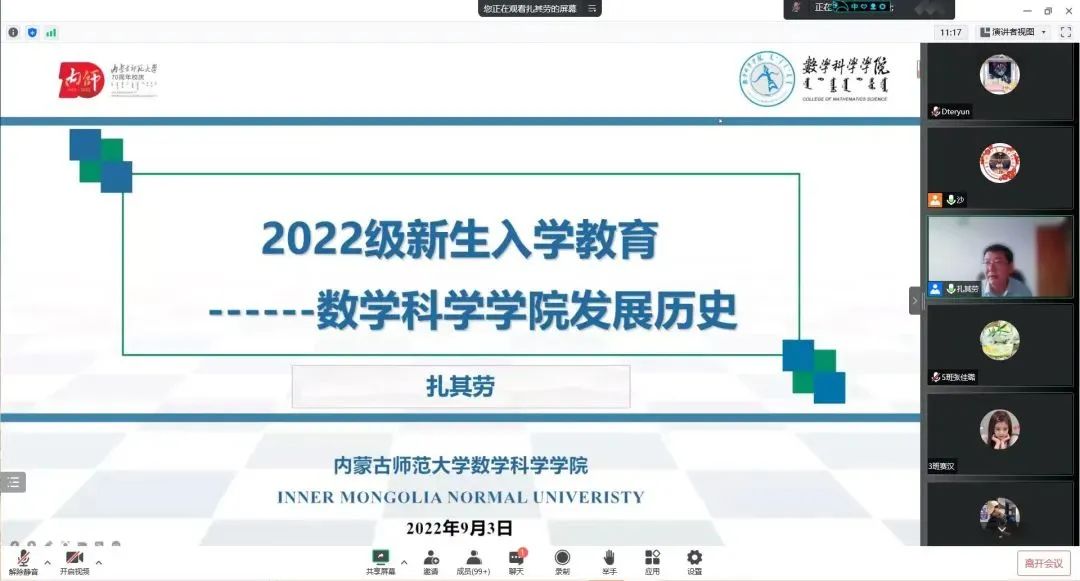 为了让2022级新生更好的了解适应大学生活,树立远大理想,明确奋斗目标,遵守校规校纪,养成良好的学习和生活习惯,9月3日,数学科学学院组织2022级全体新生进行线上新生入学教育。