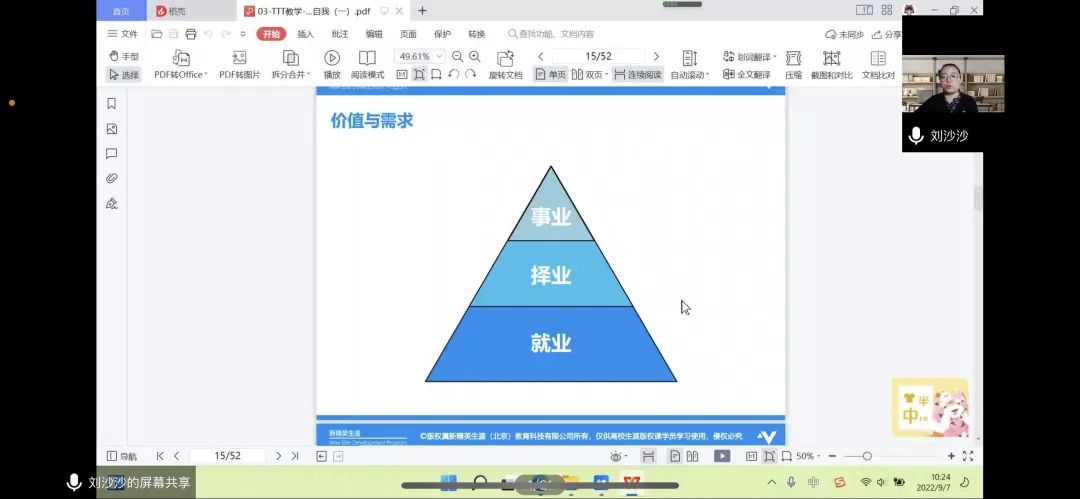 为帮助新生了解专业发展动态、强化专业归属感,树立专业学习信心,培养专业意识和思维能力,激发学习内在动力,9月7日上午10点,数学科学学院学生思想政治辅导员刘沙沙老师于腾讯会议上开展了“2022级新生入学教育——新生学业规划引导教育讲座”。