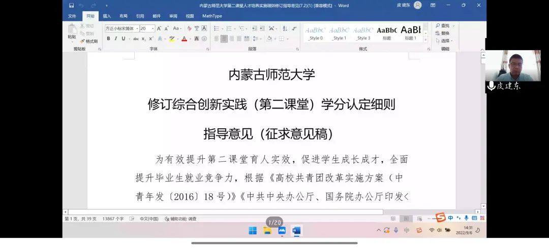 9月6日下午2:30,数学科学学院组织新生开展了“第二课堂学分认定细则指导讲座”,会议由学院团总书记皮建东老师主持。