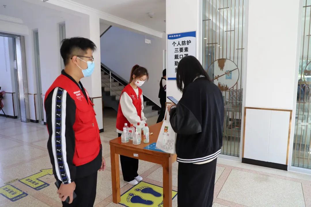 在不久前的疫情防控工作中,志愿者服务队积极服从指挥,迅速采取行动,为在校同学们的安全提供保障。疫情来势汹汹如洪水猛兽,数学科学学院志愿者服务队队员们不畏艰险,勇往直前,用自己的汗水和努力为同学们提供服务。